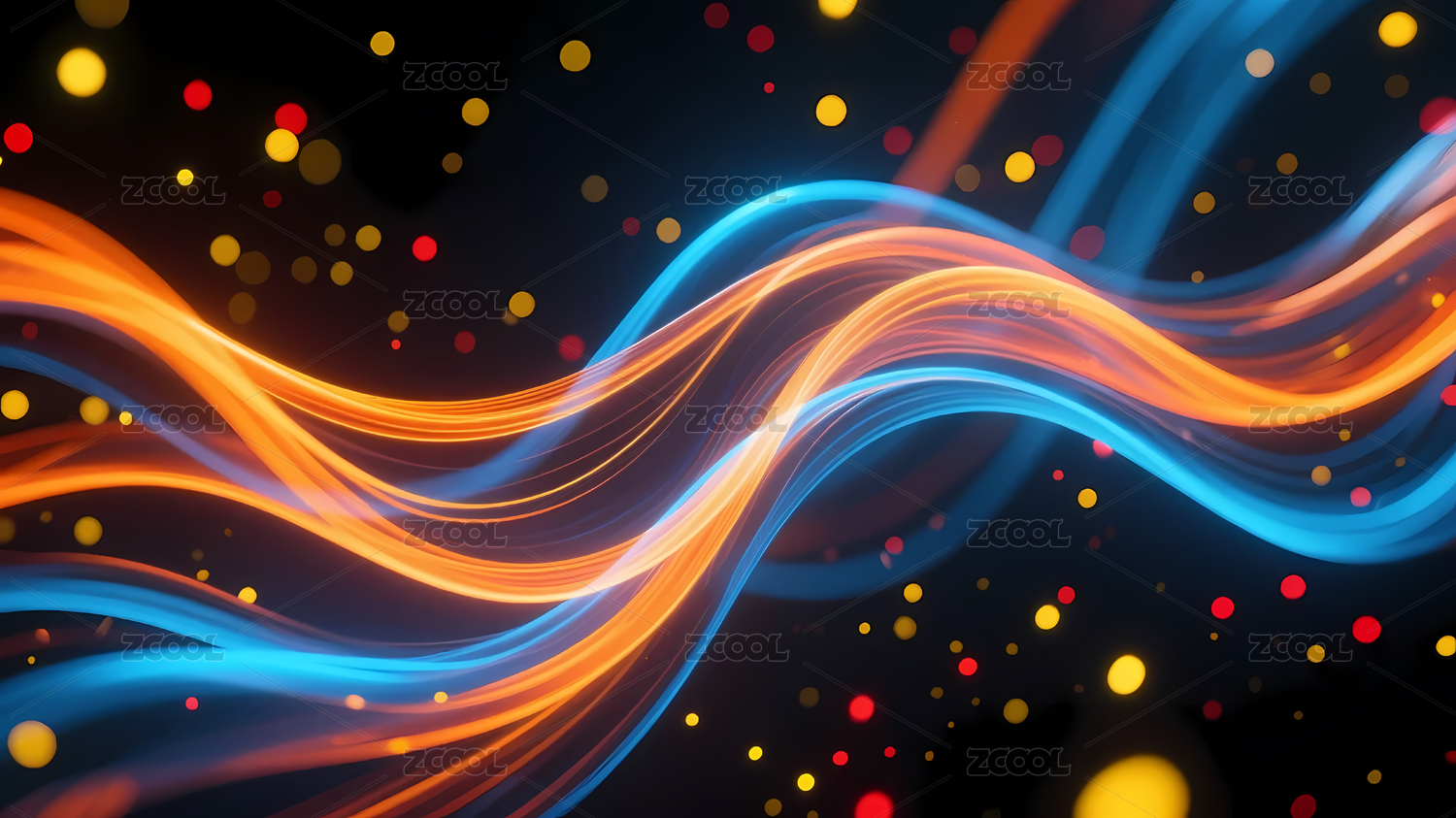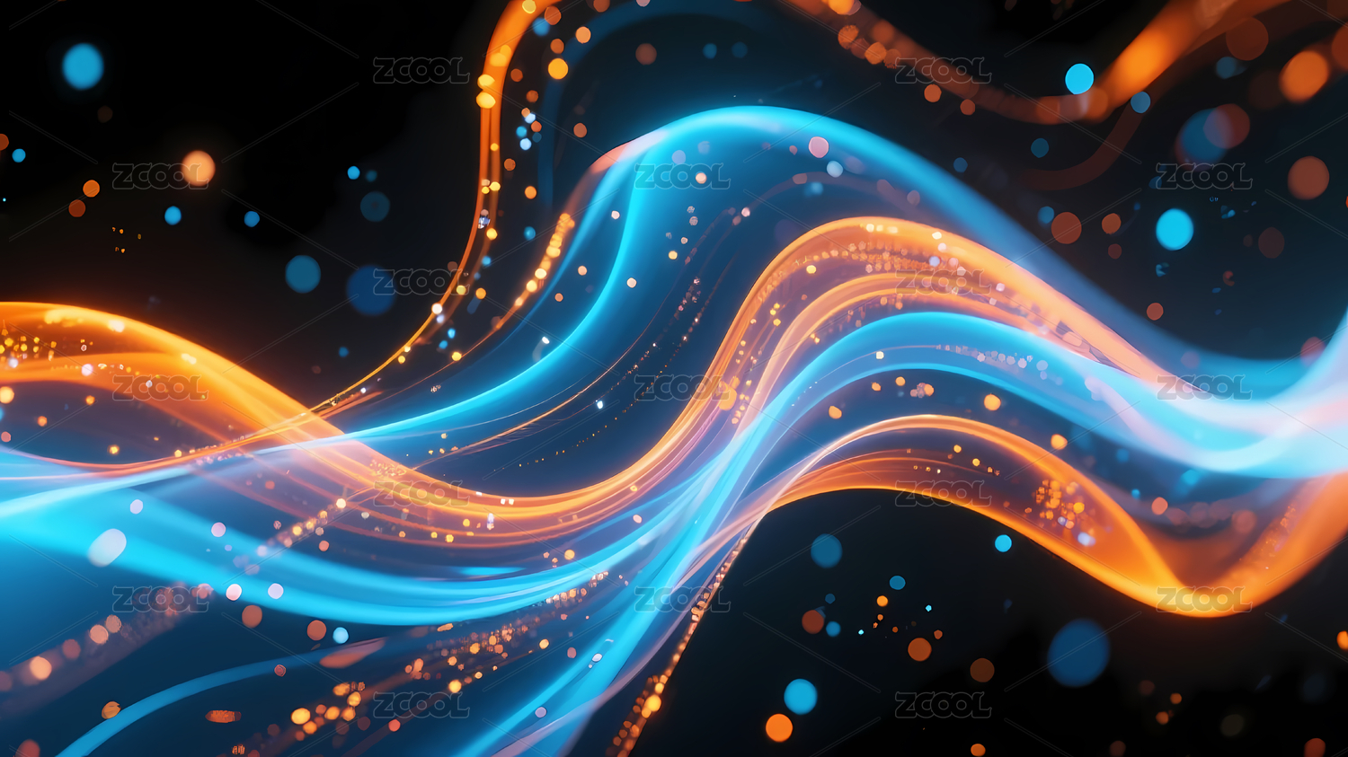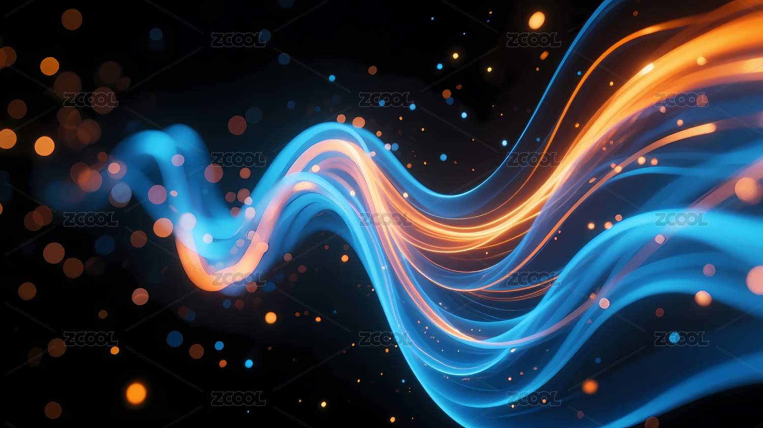 蜿蜒,蓝色,橙色,背景,光点,黑色,流线,五彩,斑斓,装饰