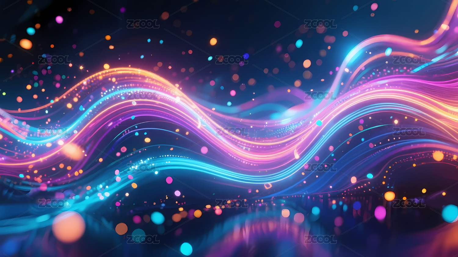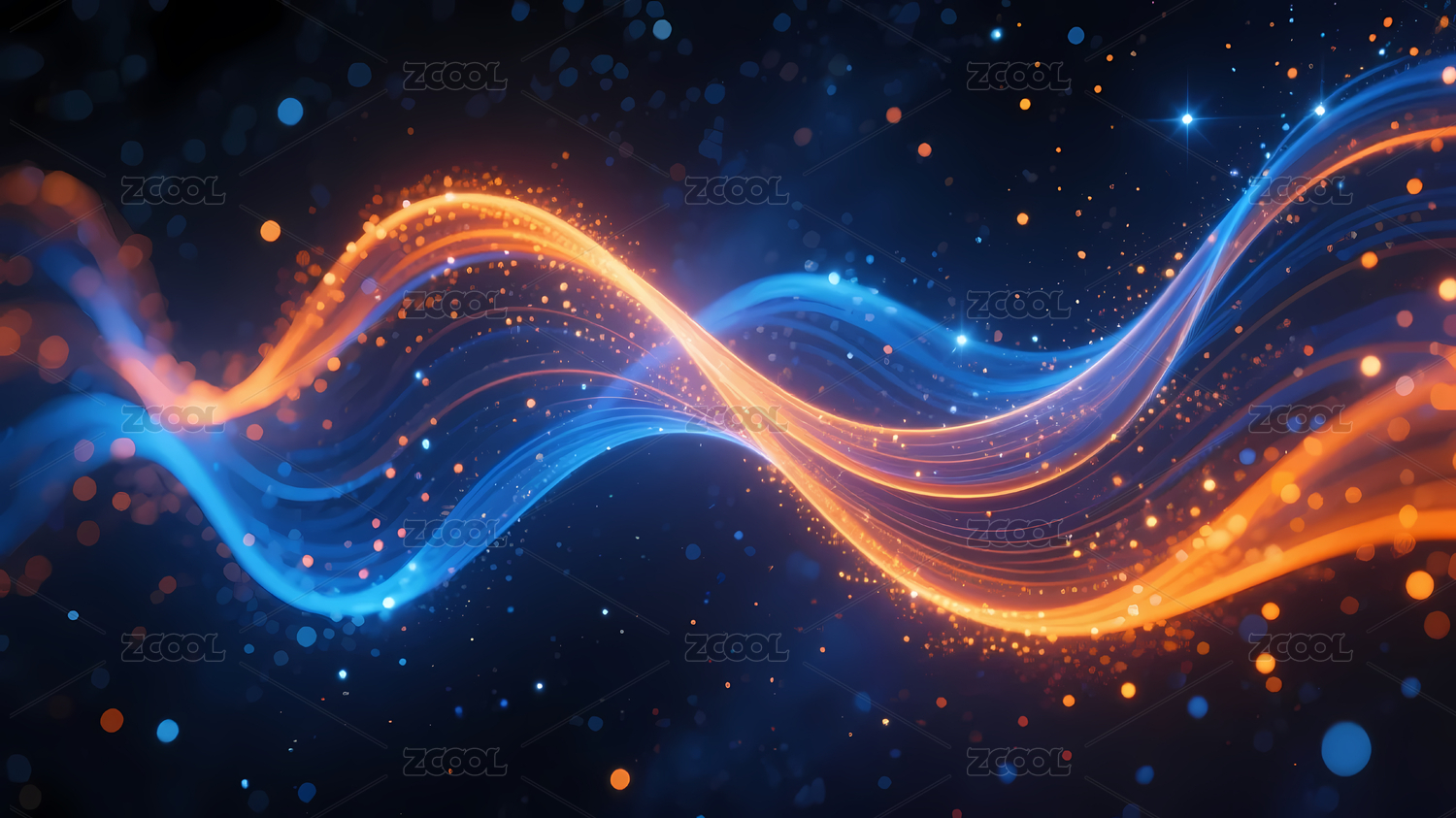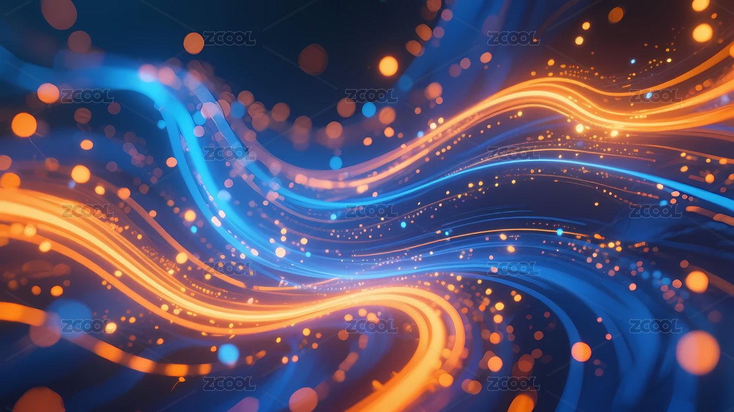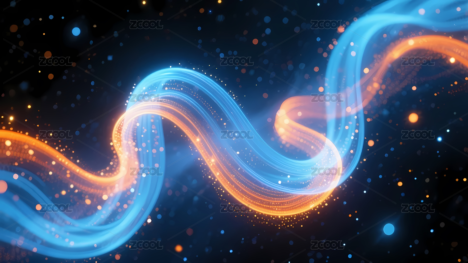 蜿蜒,蓝色,橙色,背景,光点,黑色,流线,五彩,斑斓,装饰