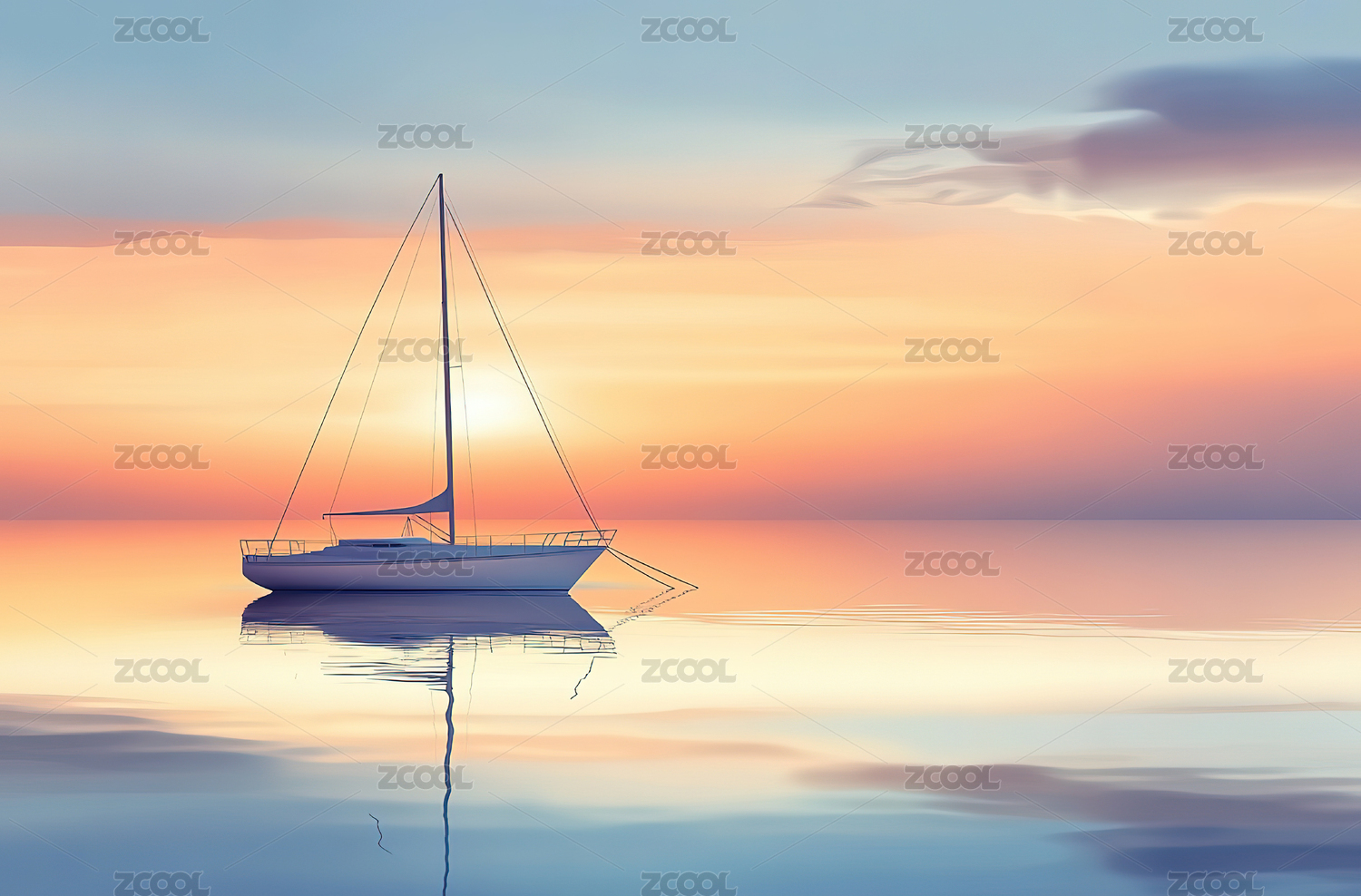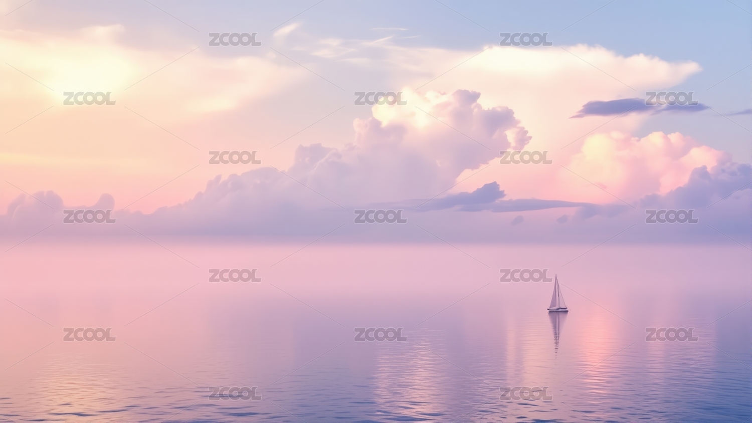 宁静,海面,倒影,蓝色,夕阳,美丽,唯美,平静,粉色,云彩
