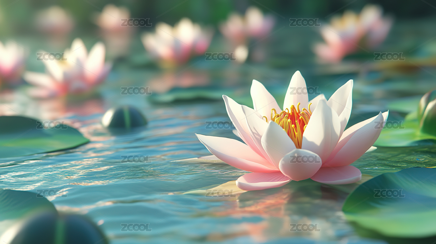 荷花,水珠,荷叶,水面,自然,花卉,唯美,清新,插画,矢量
