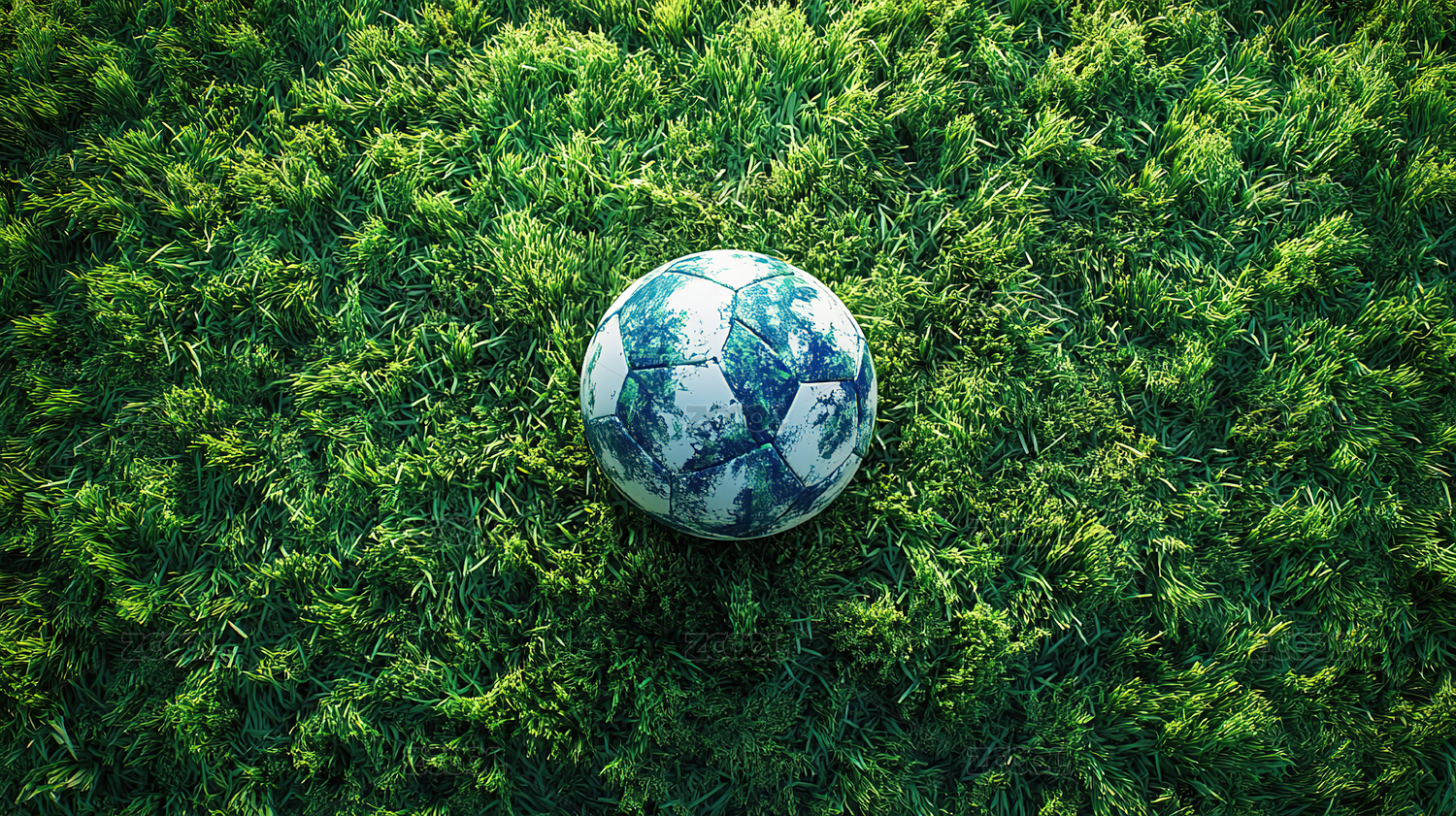 足球在草地上的高角度视角