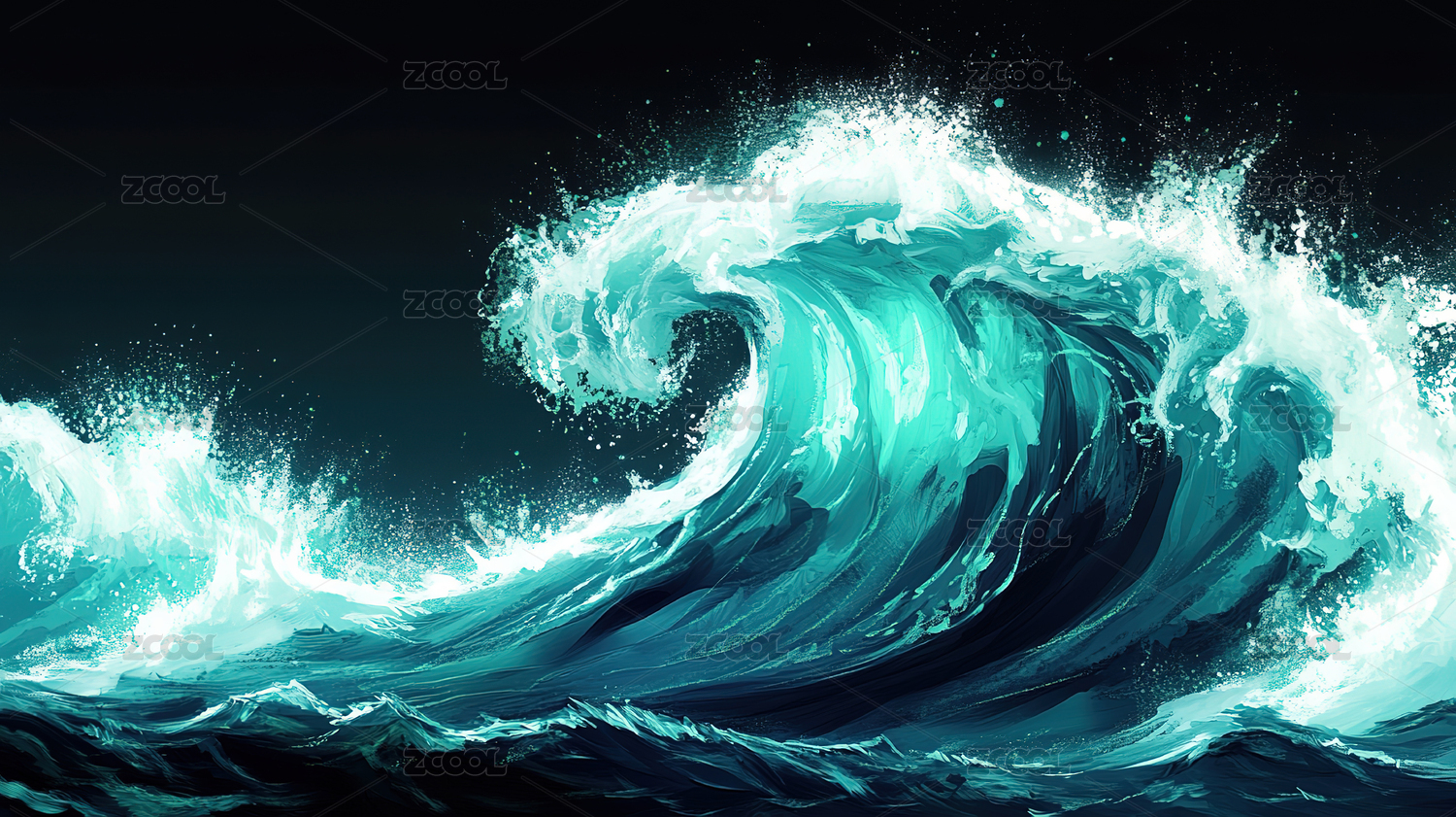 黑色背景翻涌海浪