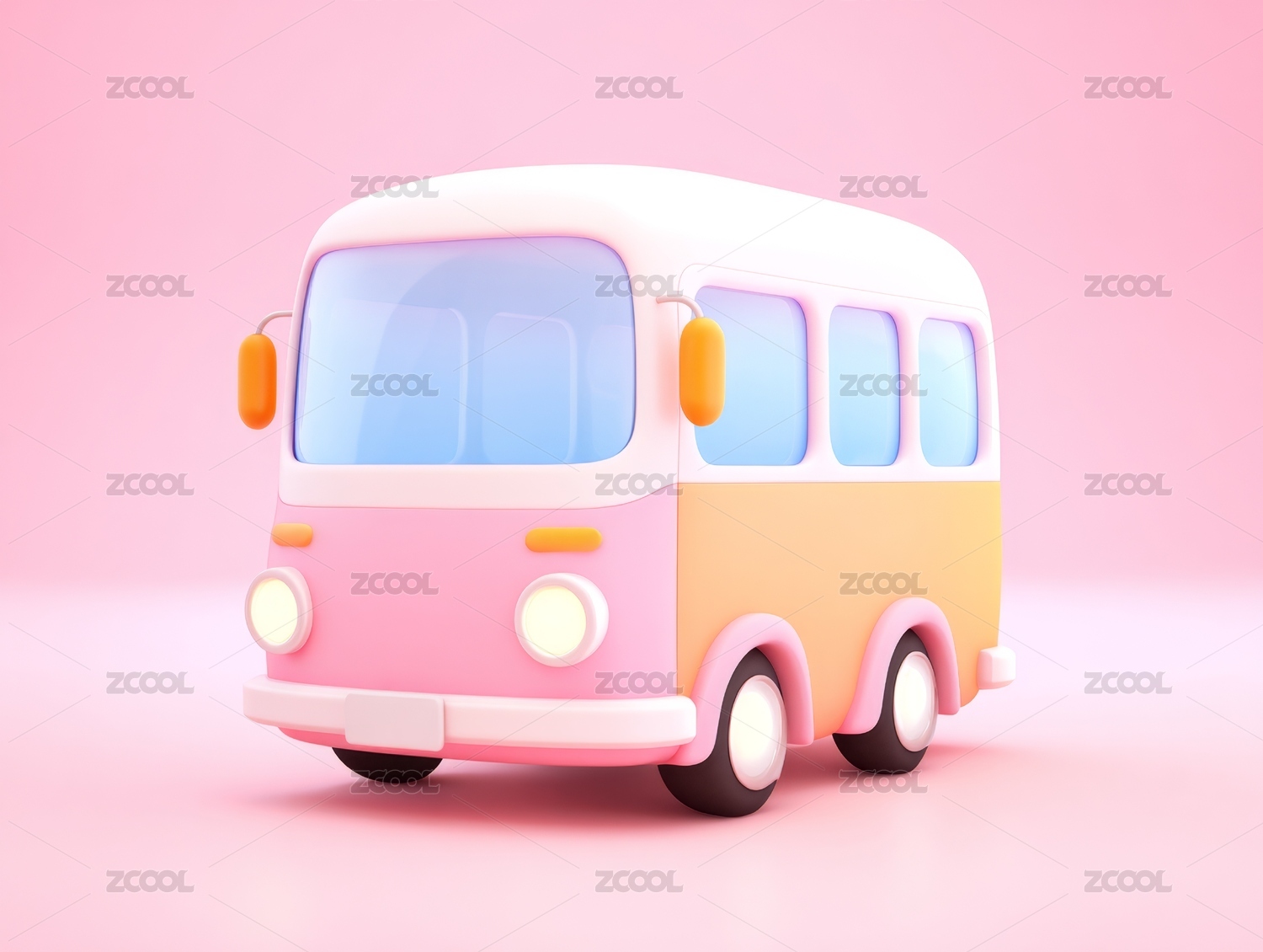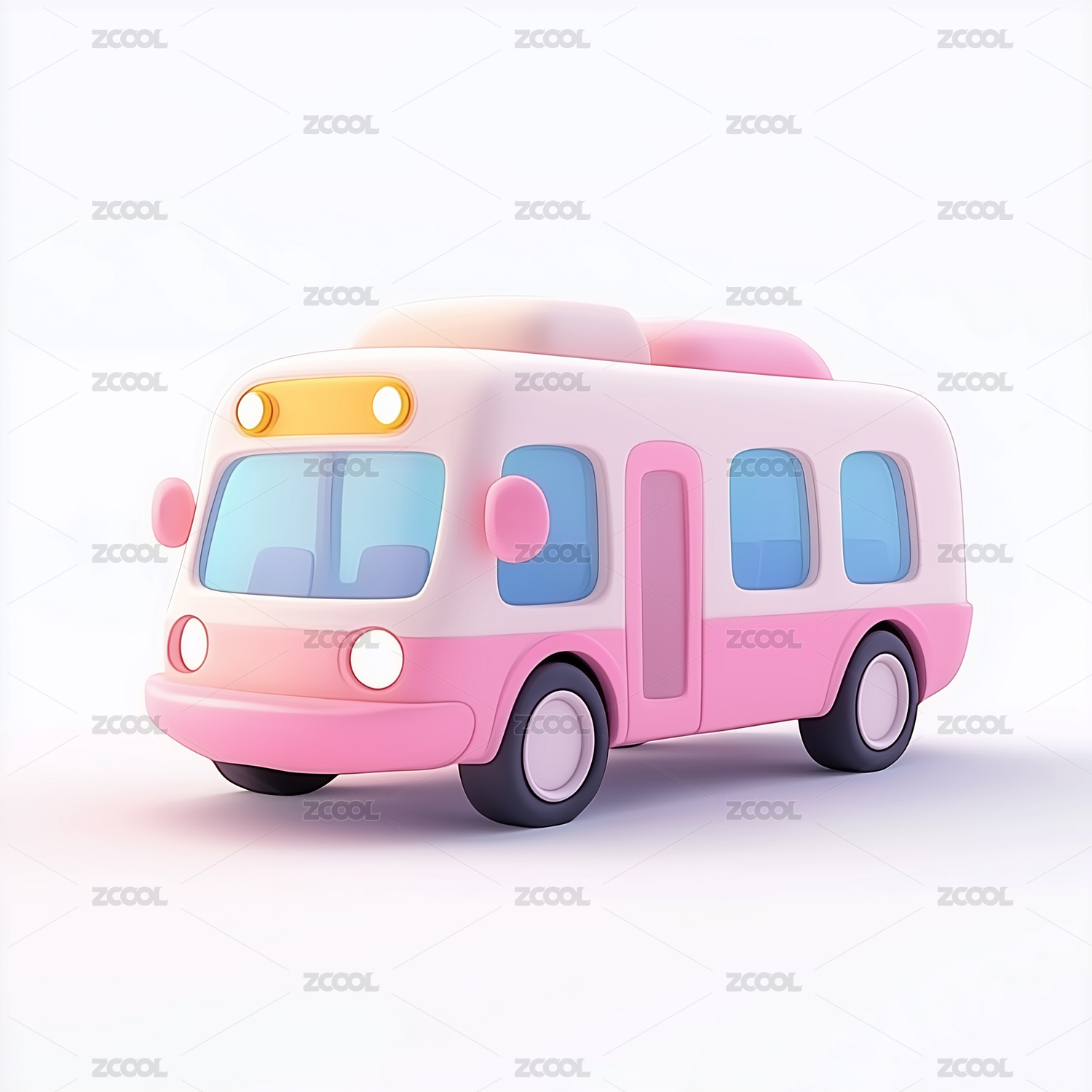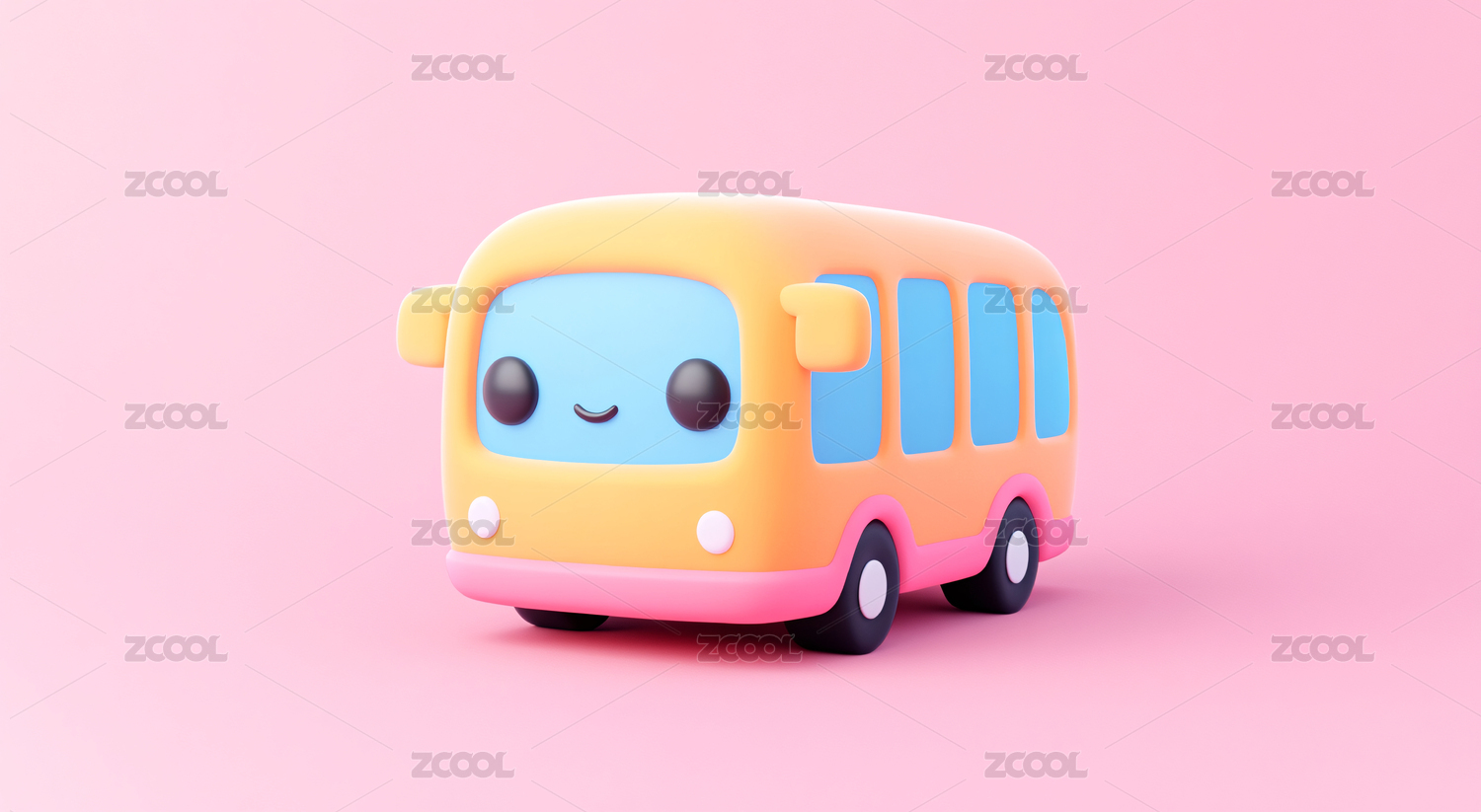 粉色,巴士,可爱,卡通,黄色,车轮,窗户,玩具,设计,柔和