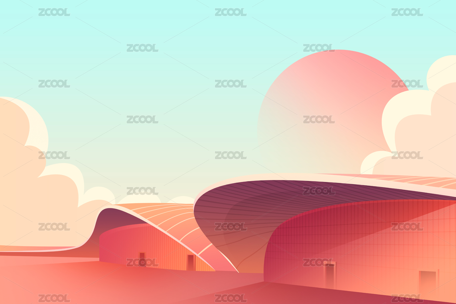 建筑,自然,河流,山脉,夕阳,现代,曲线,艺术,抽象,和谐