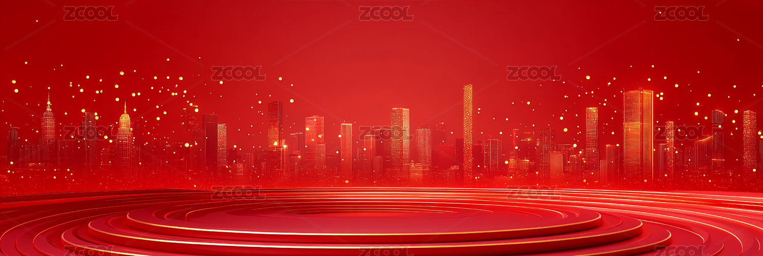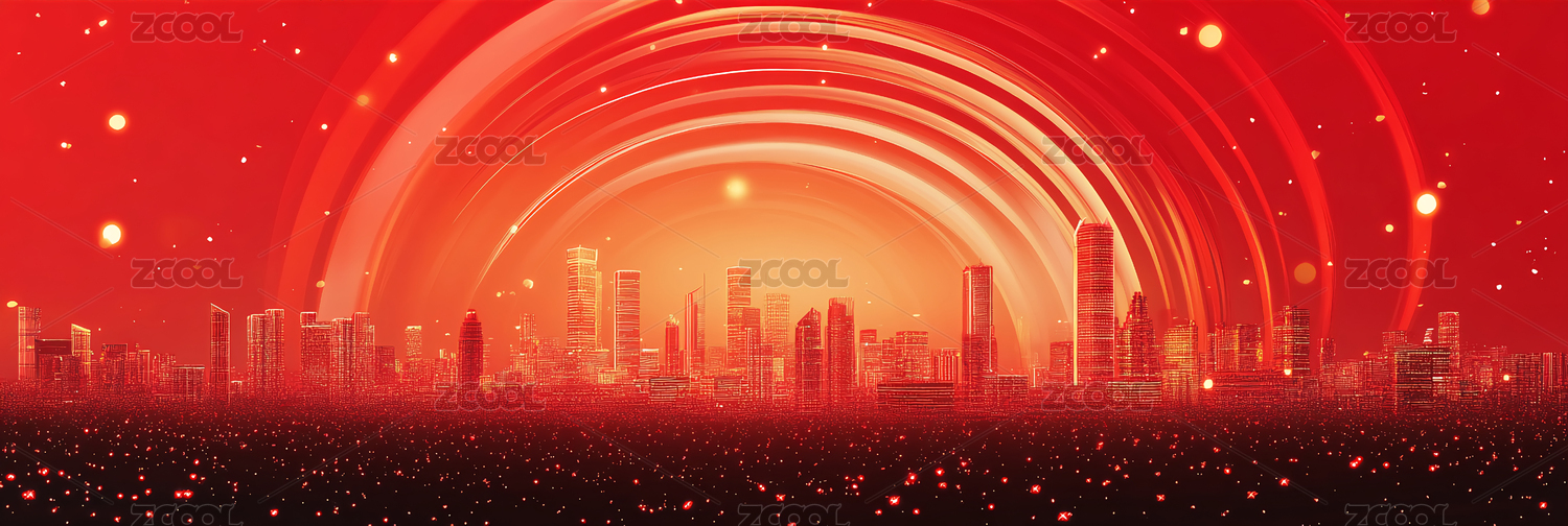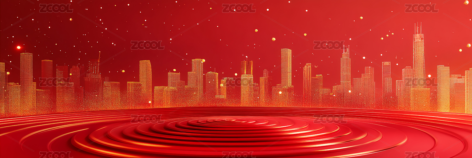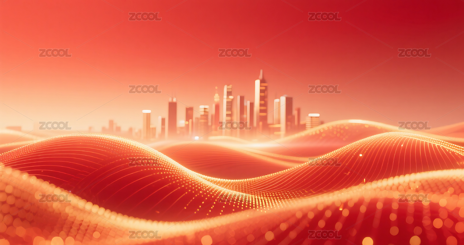 红金色流体城市建筑主视觉背景