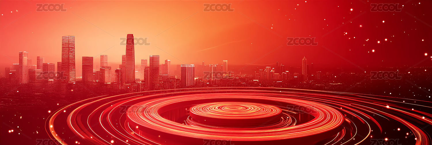 红金色流体城市建筑主视觉漩涡背景
