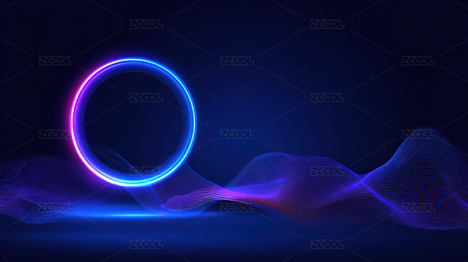 数码科技蓝色节奏波浪线抽象图形海报背景