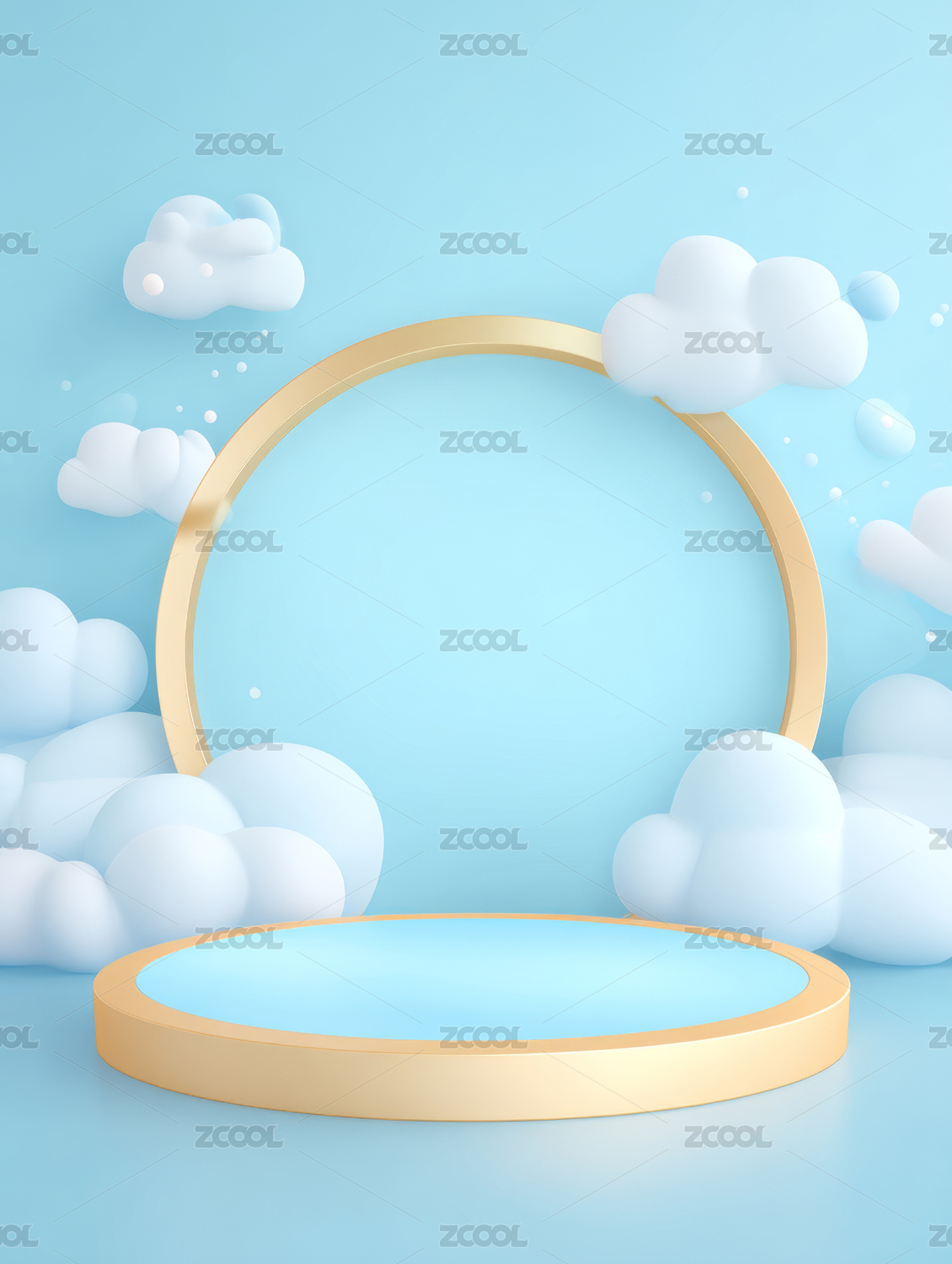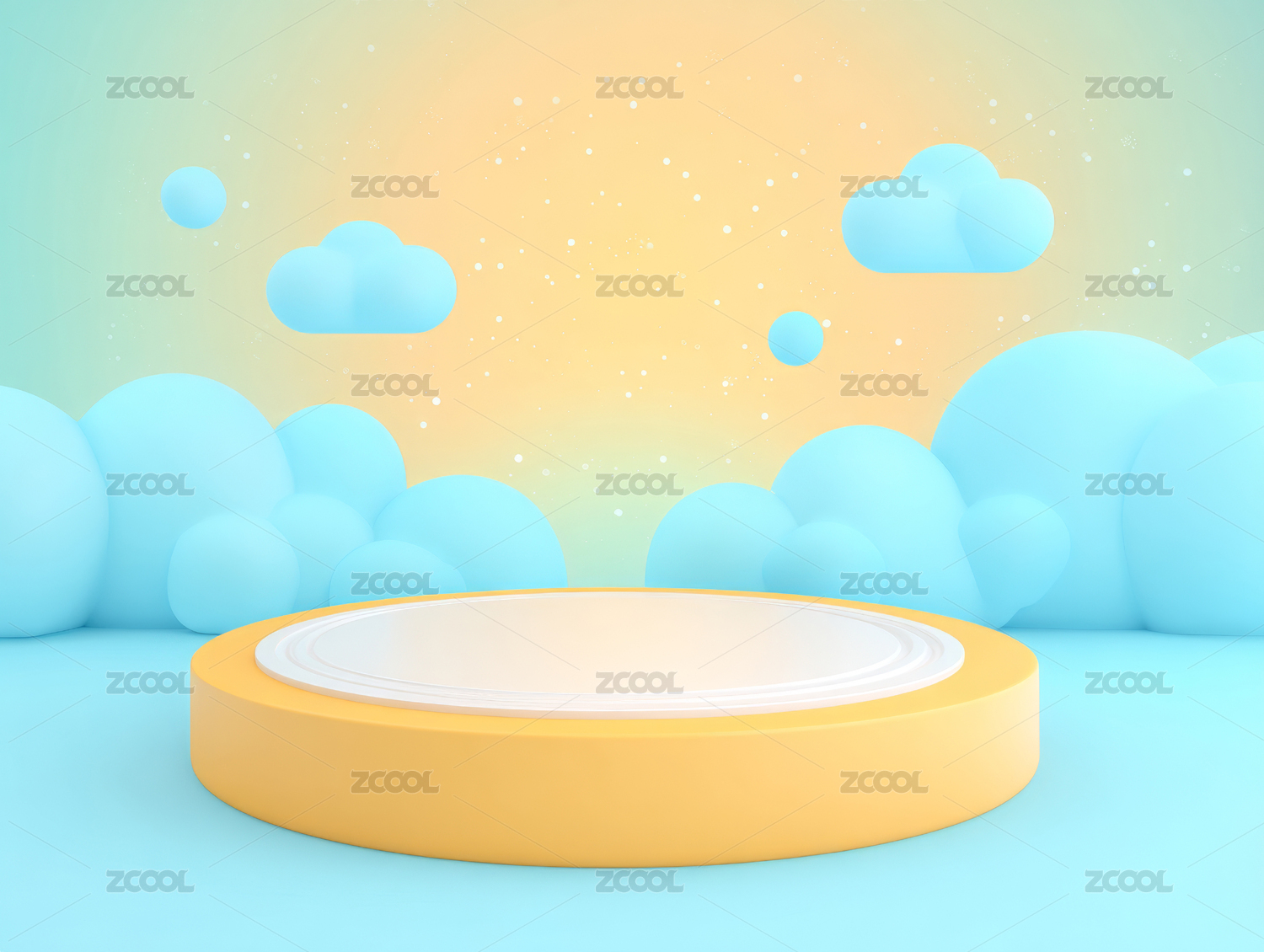 卡通,云朵,太阳,舞台,蓝色,黄色,简洁,背景,3D