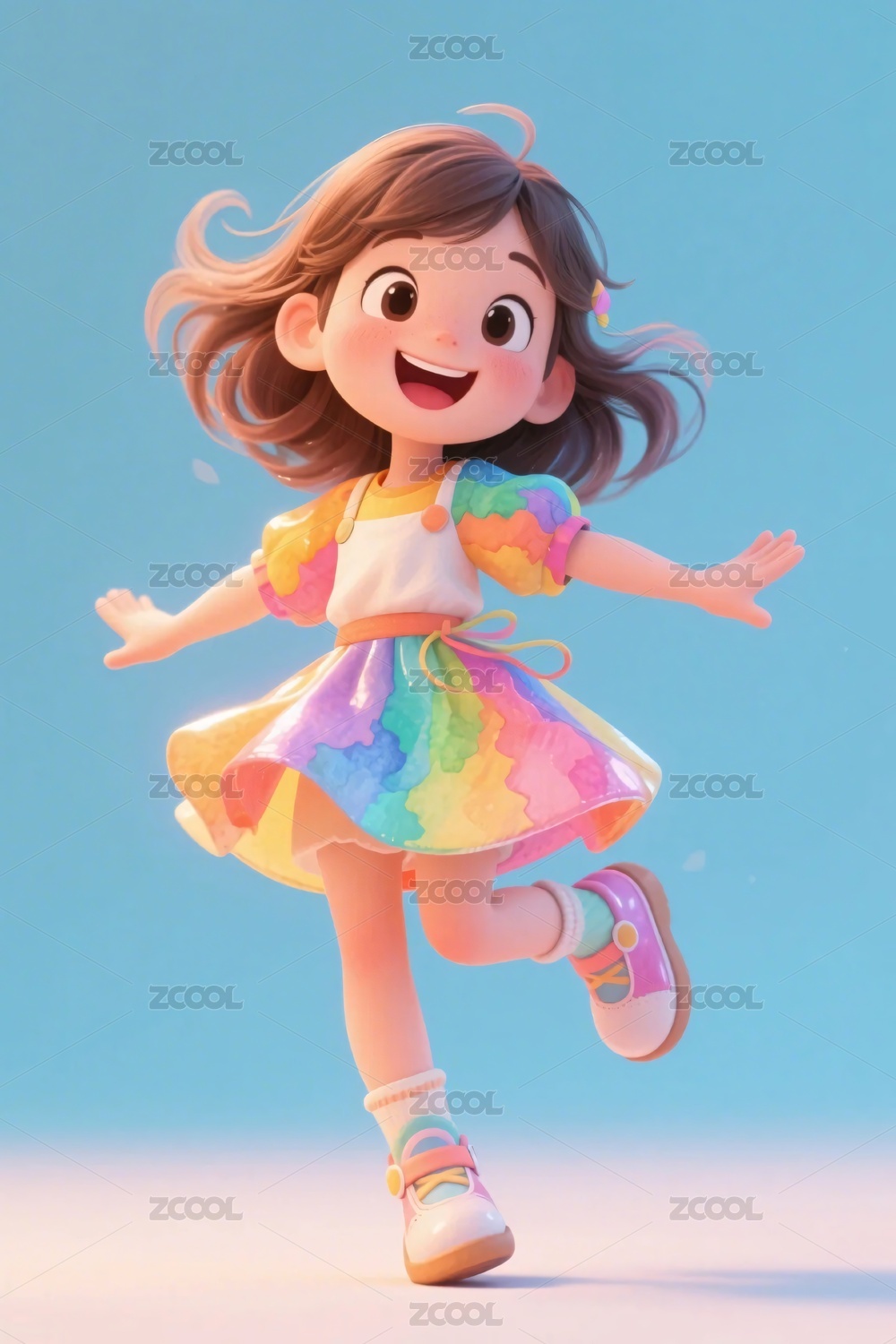 卡通女孩,跳跃,红发,插画,矢量,活力,服装,鞋子,姿势,手势