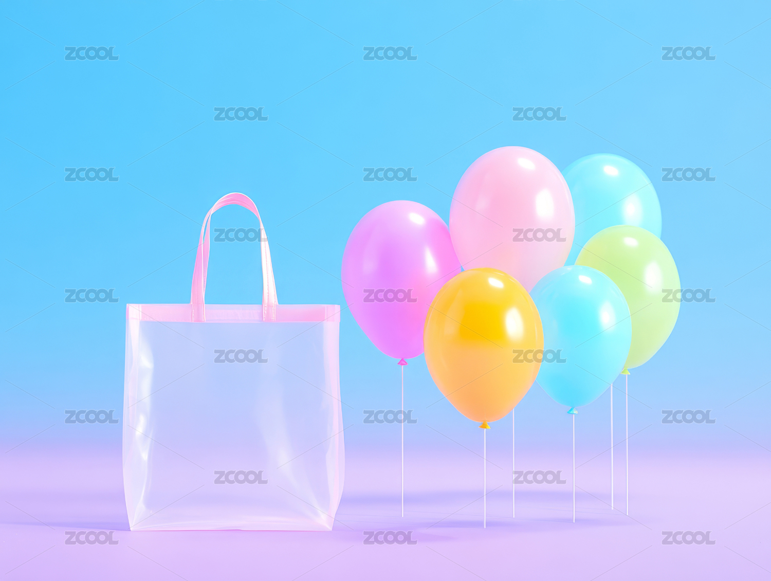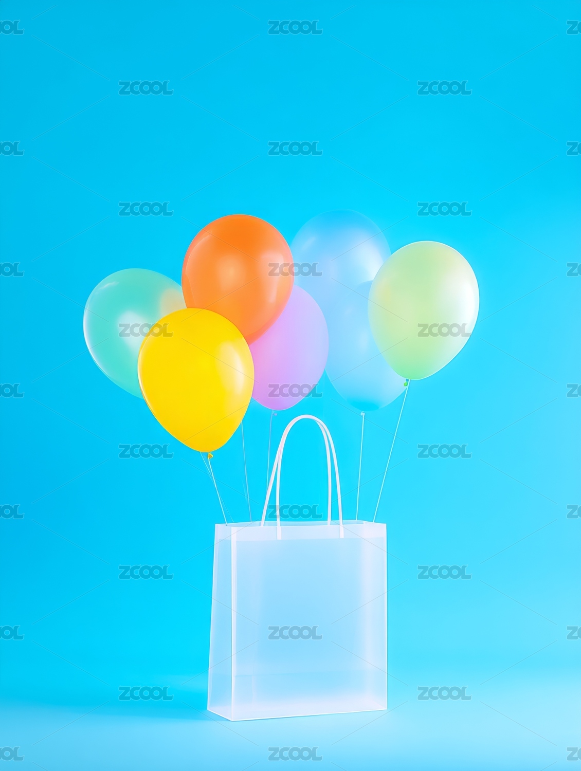 气球,透明袋,蓝色,背景,多彩,悬浮,简约,设计,装饰