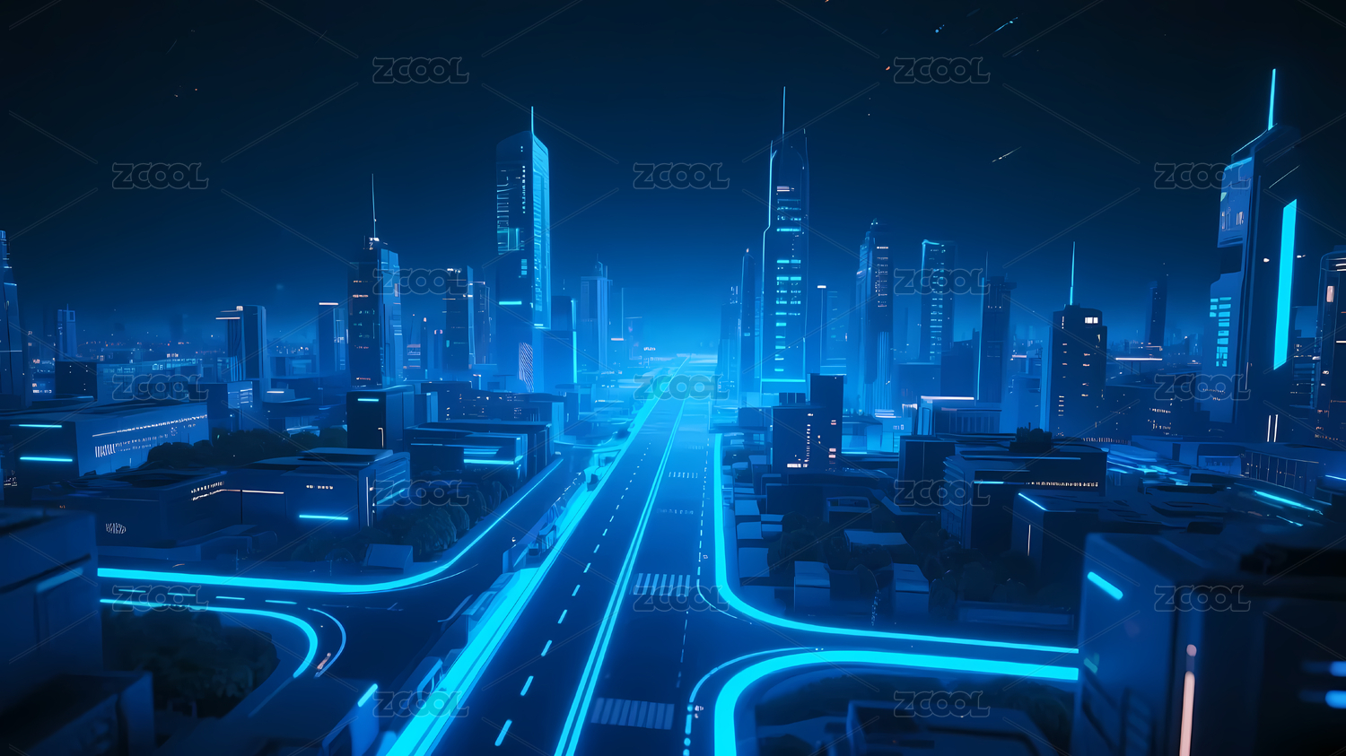 蓝色,背景,科技,高速公路,高楼,建筑,霓虹灯,夜晚,城市,现代