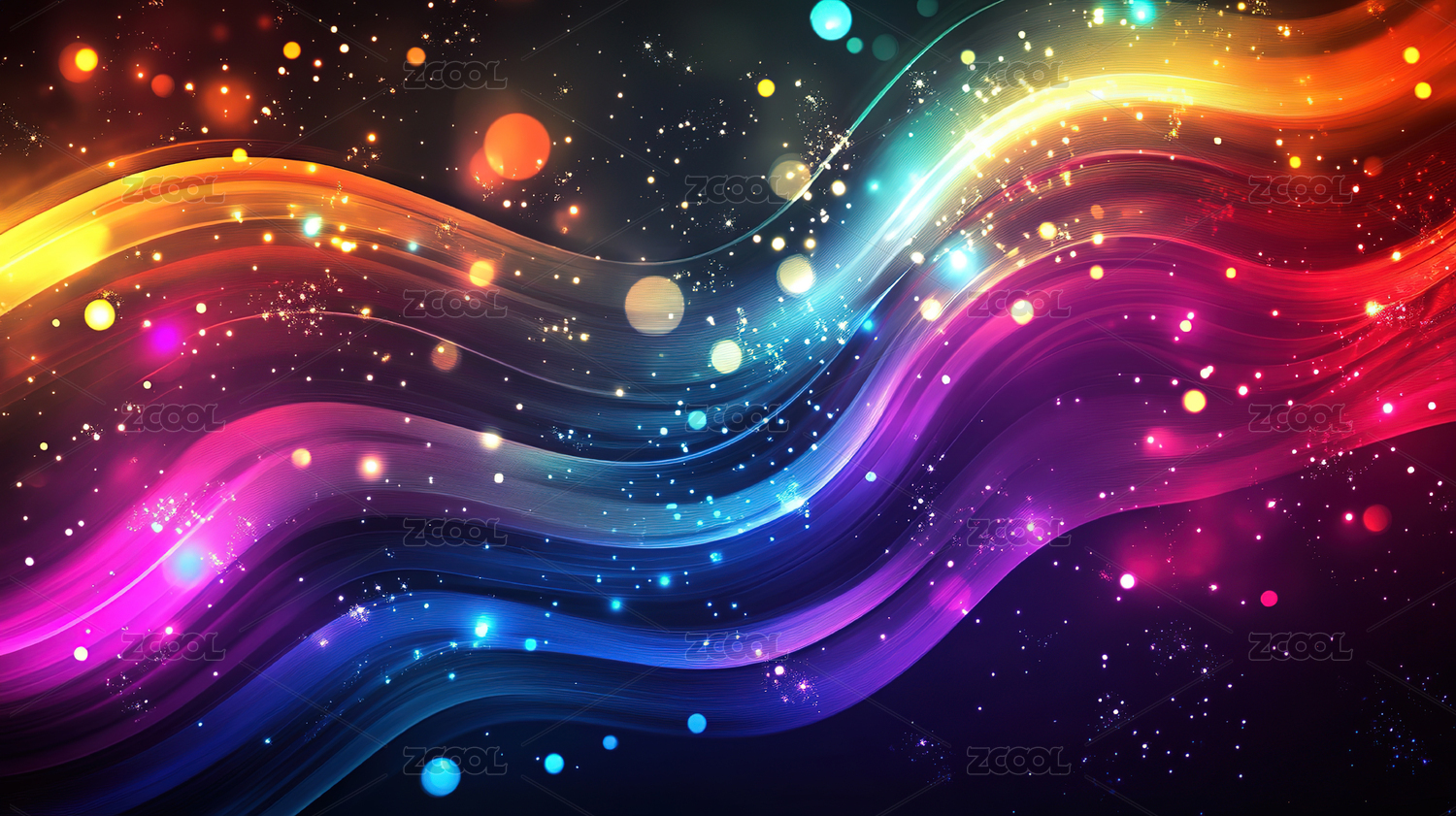 彩色波浪与光点闪烁