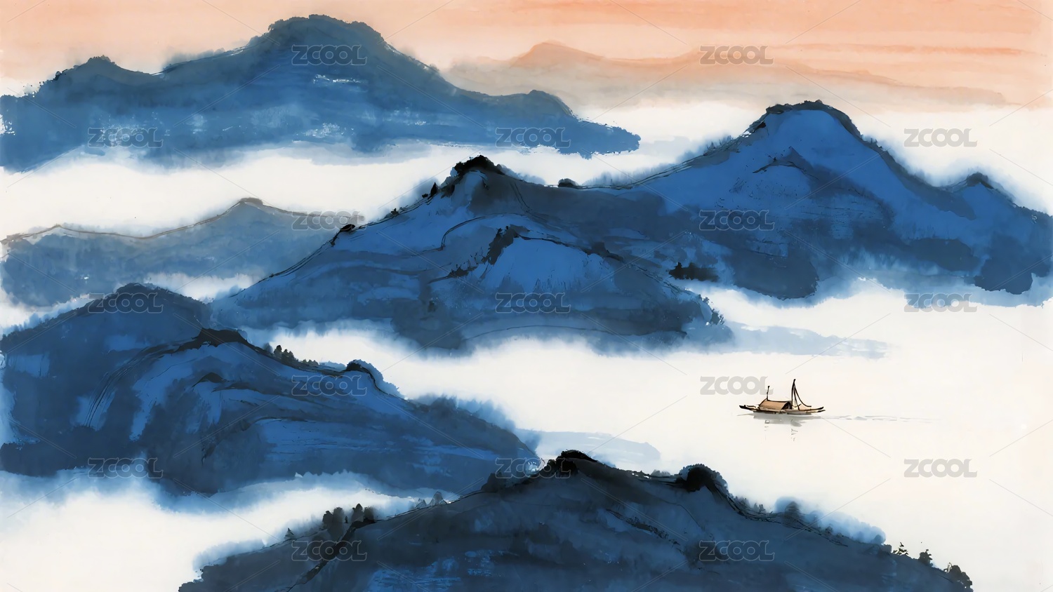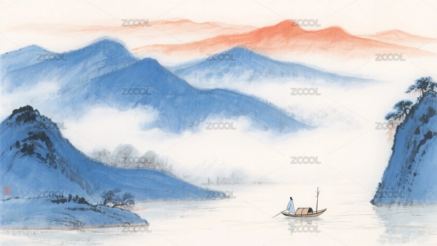 山水,孤舟,水墨画,画面元素,主题,艺术,插画