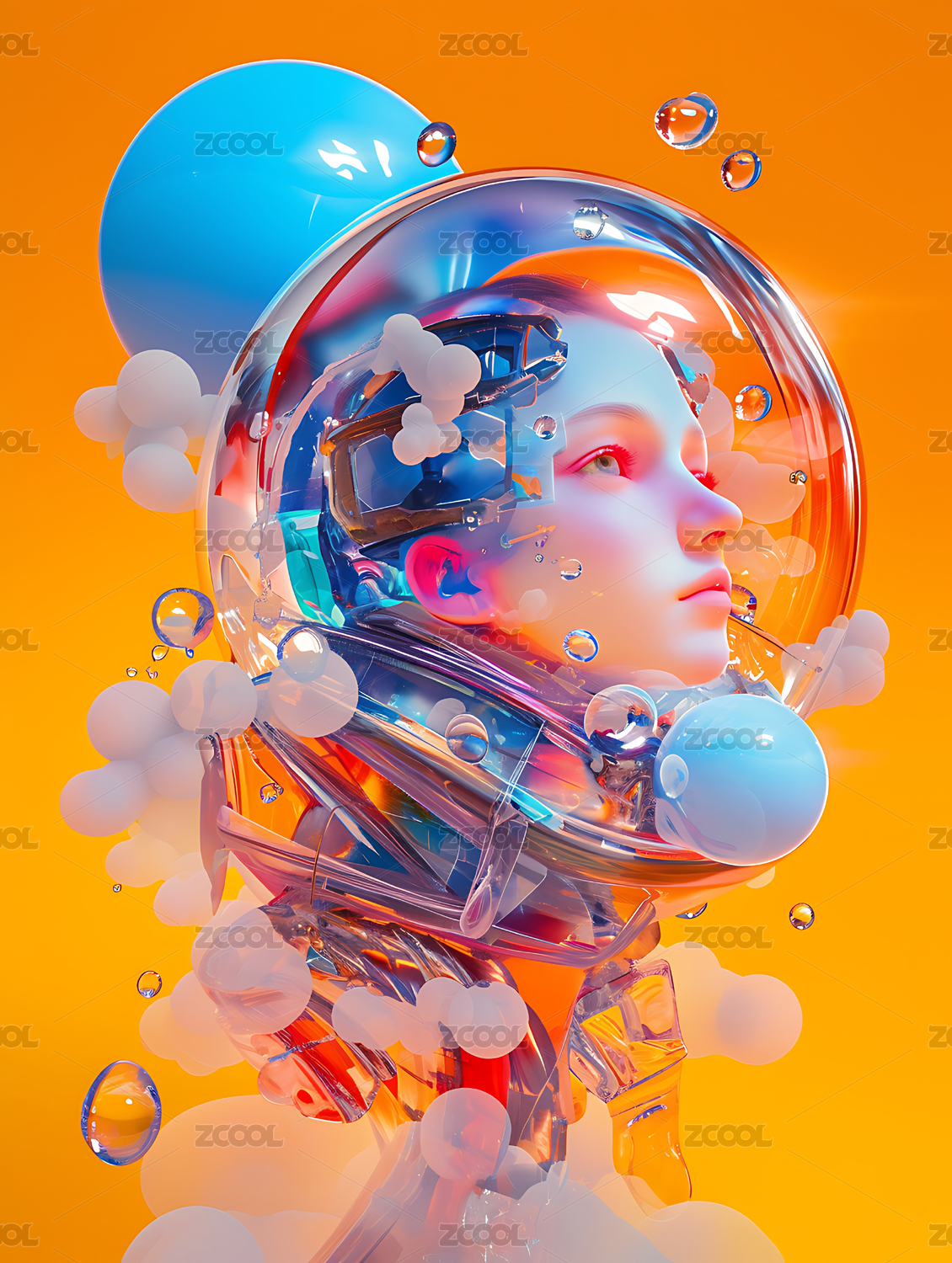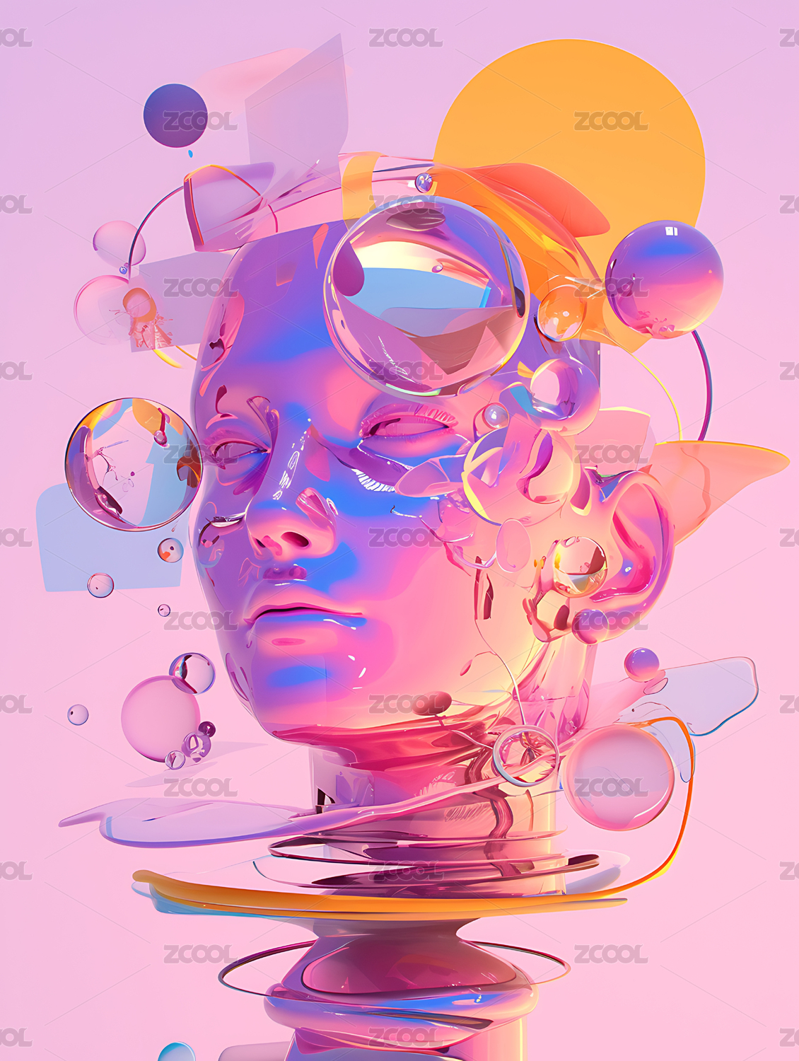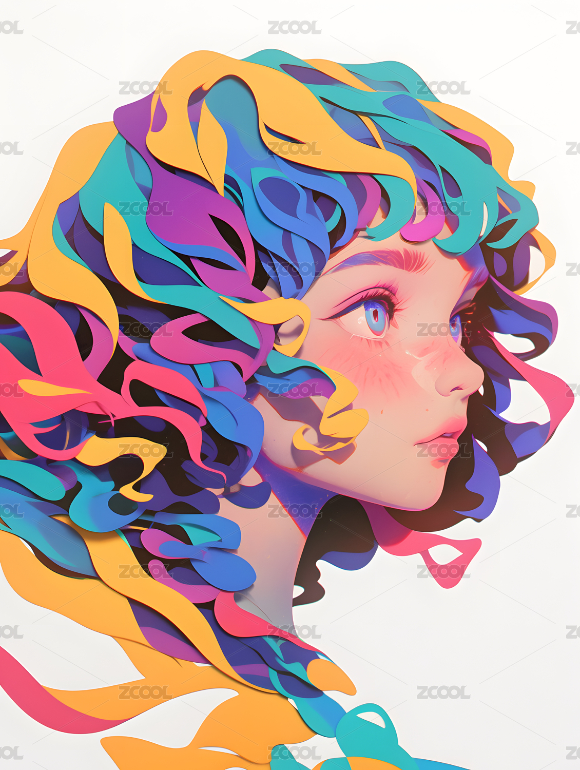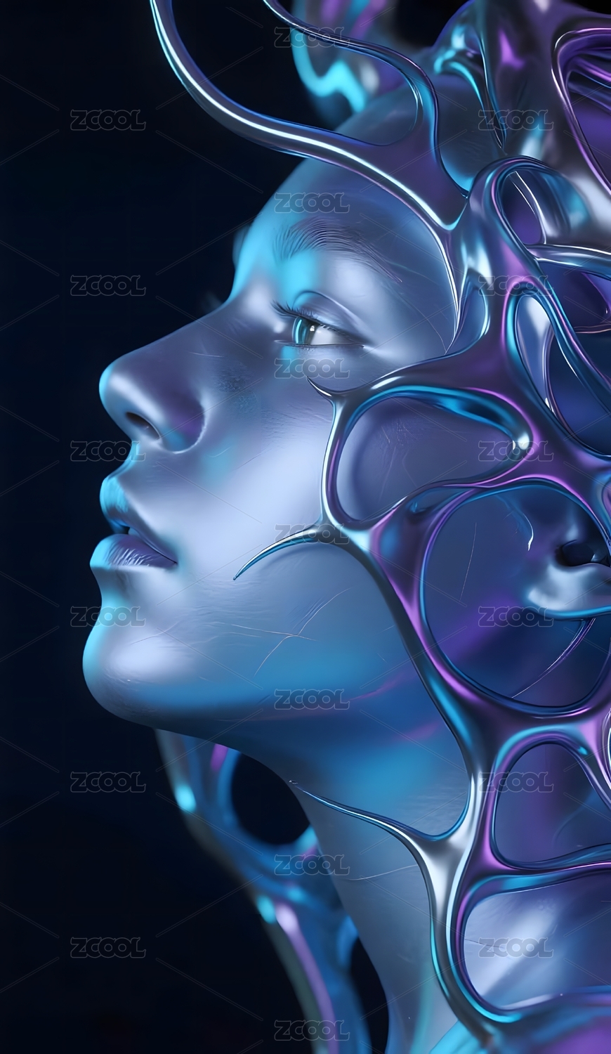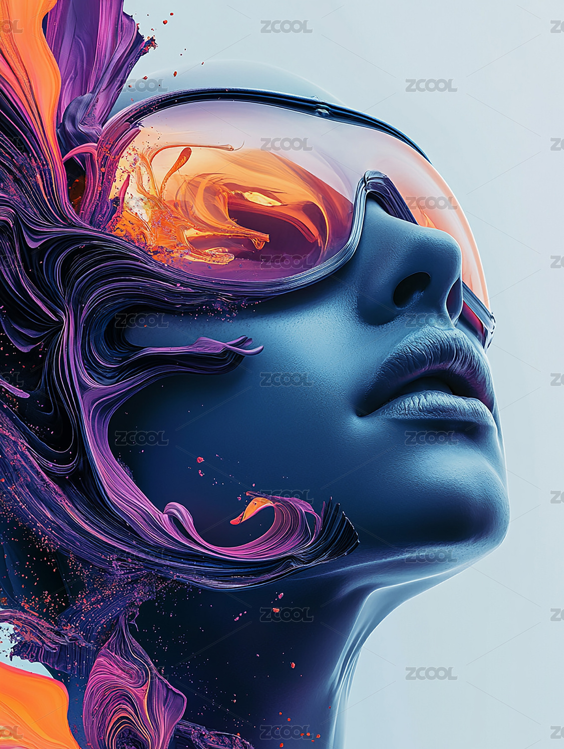 二次元,反射,镭射,插画,人物,多维度,抽象,艺术