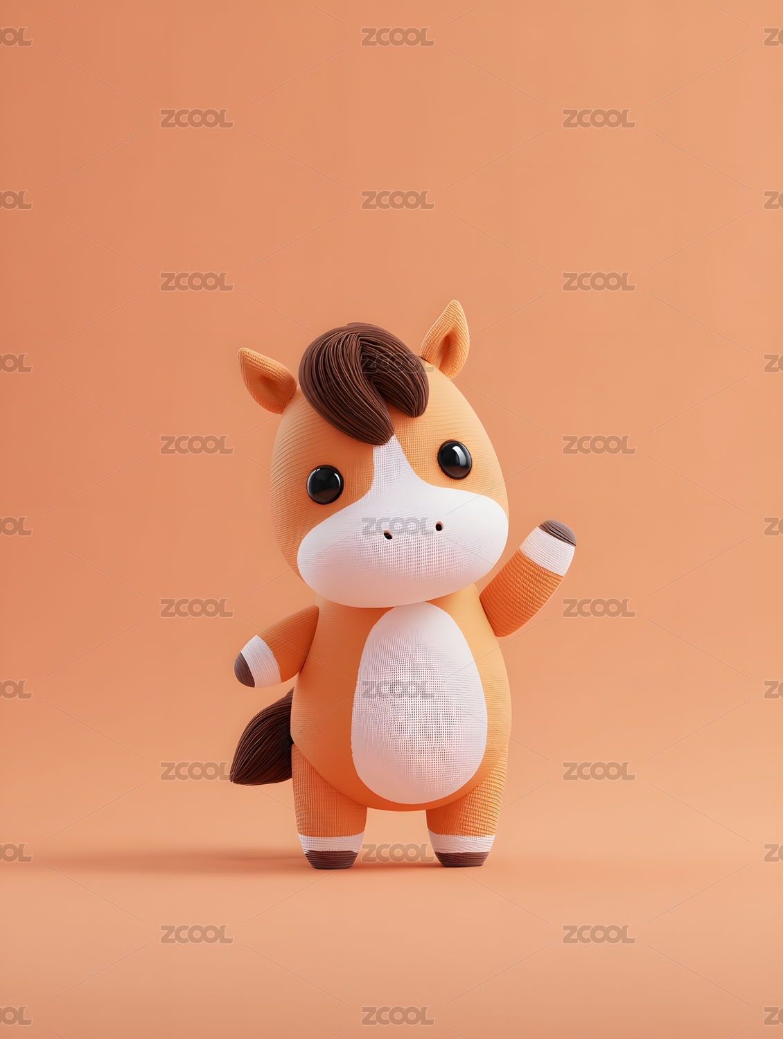 可爱,3D,渲染,模型,膨胀风格,素材,元素,马,玩具