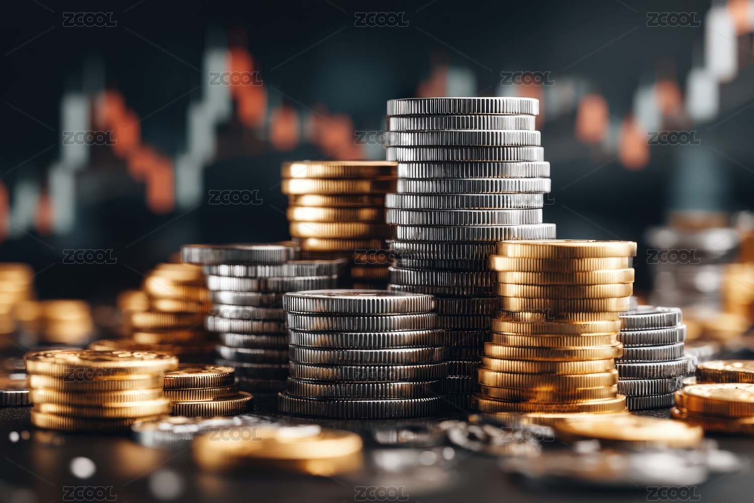 硬币堆叠与增长趋势图