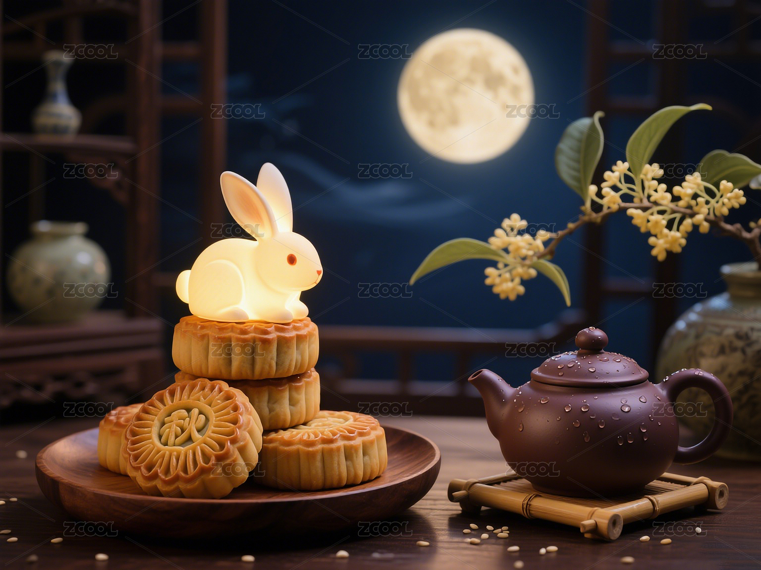 中秋节,传统,节日,插画,背景,月饼,玉兔