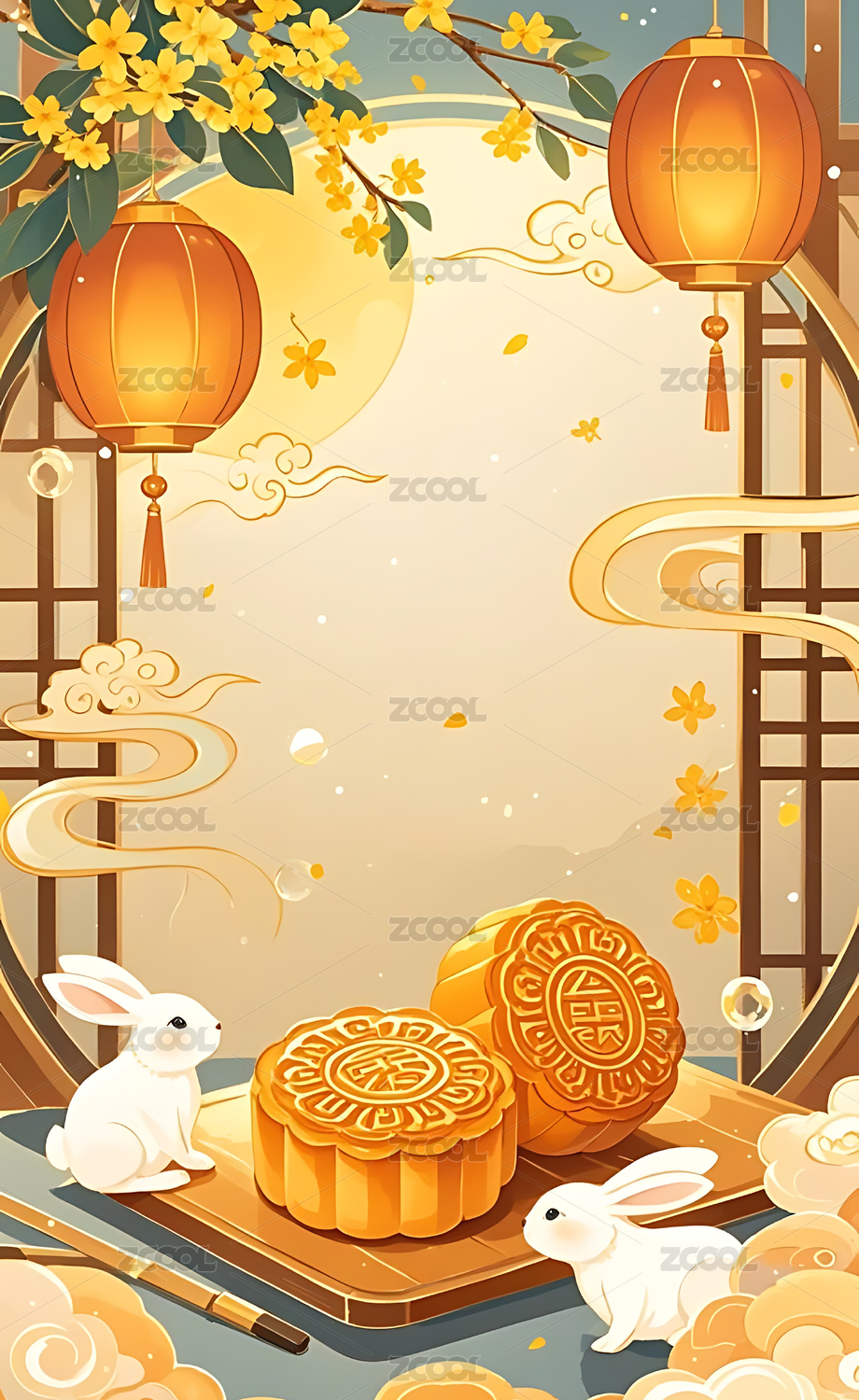中秋节,传统,节日,插画,背景,月饼,玉兔