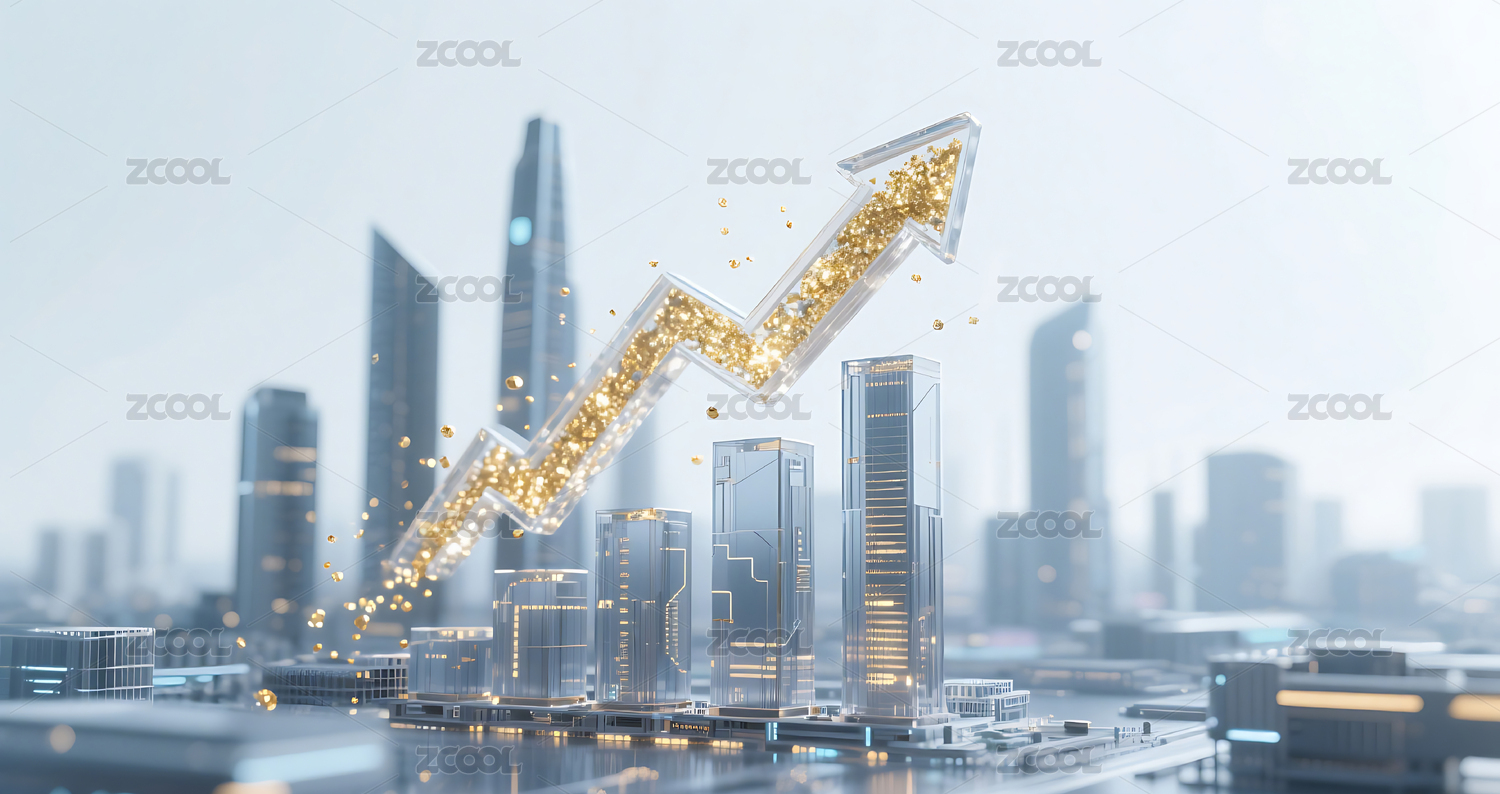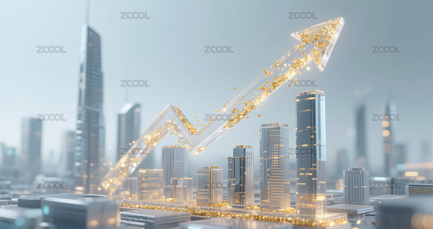 金色金融经济柱状图箭头增长城市建筑背景
