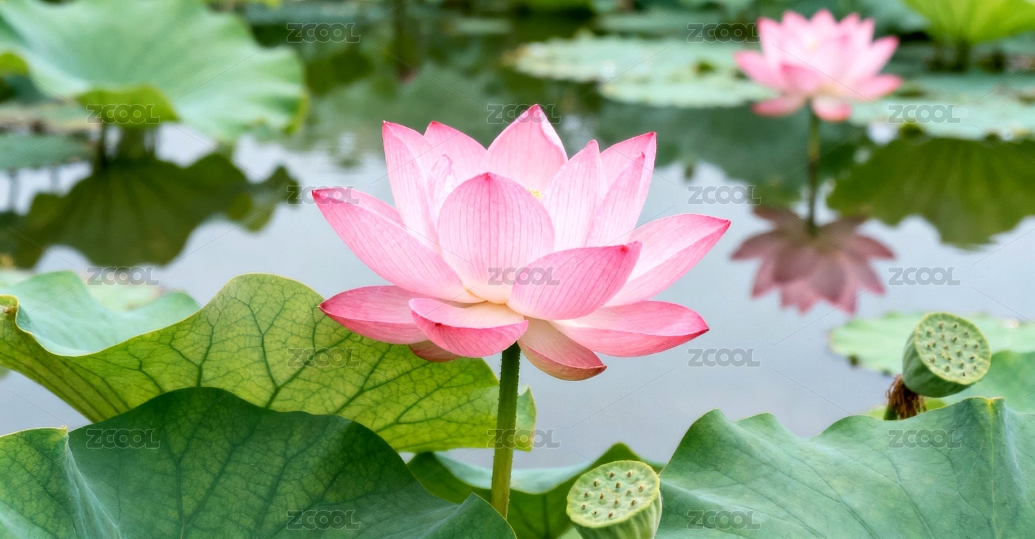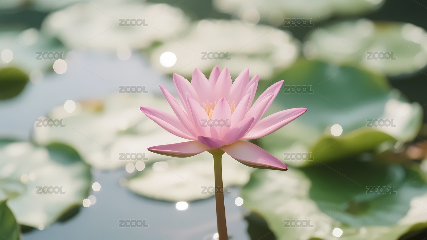背景,绿色,粉红,莲花,荷叶,水面,波光,柔和,宁静,和谐