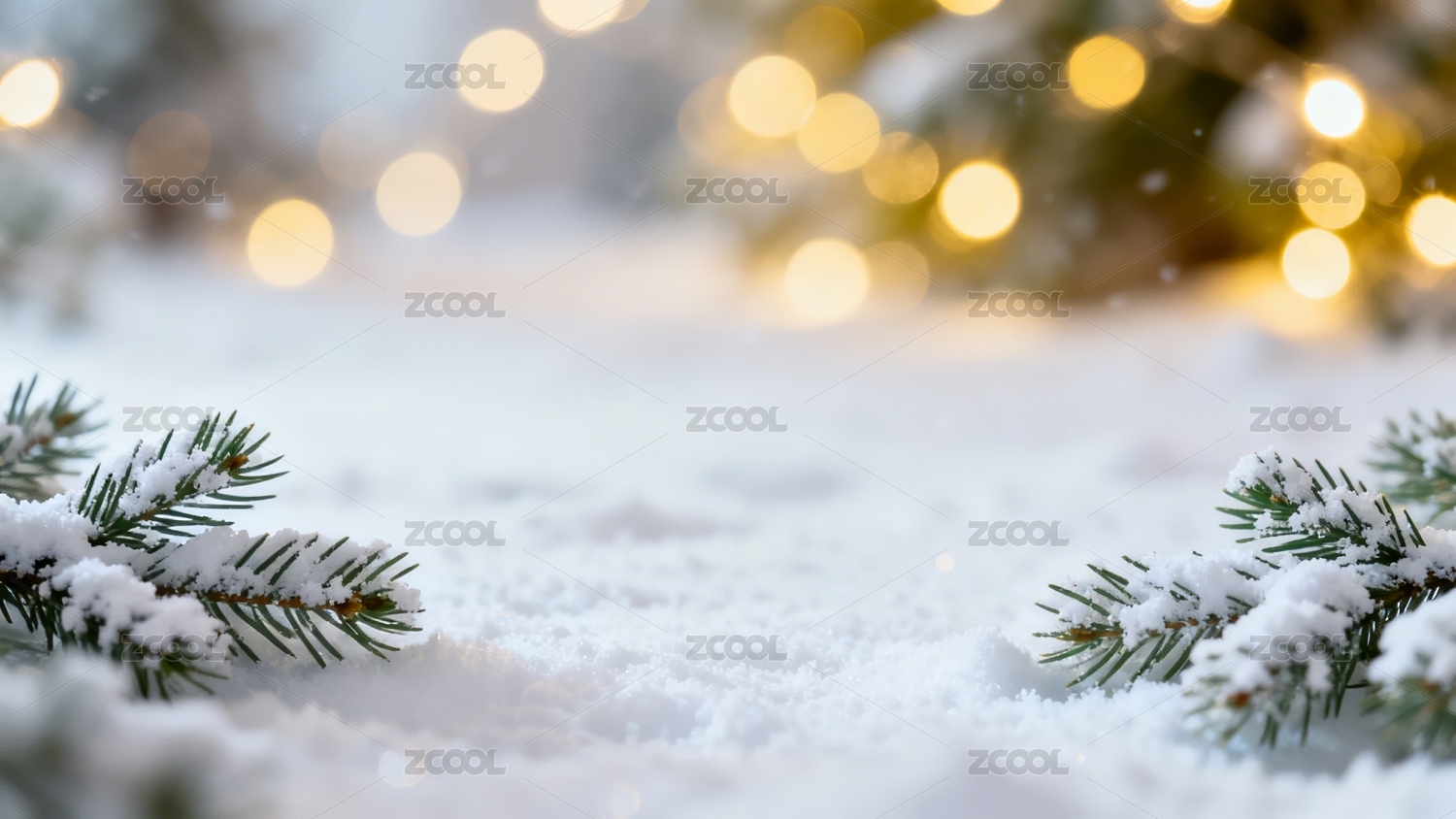 冬日雪景松枝灯光