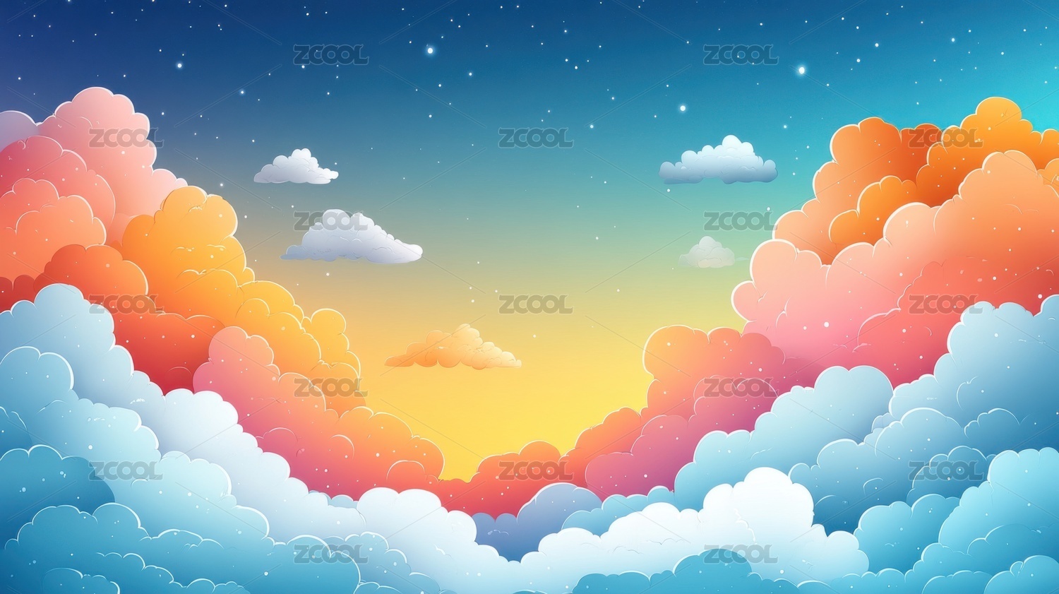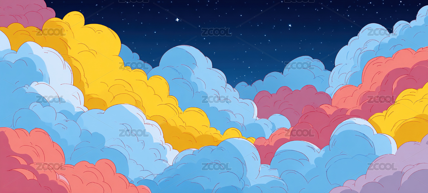 卡通动漫风云朵草原彩色祥云背景