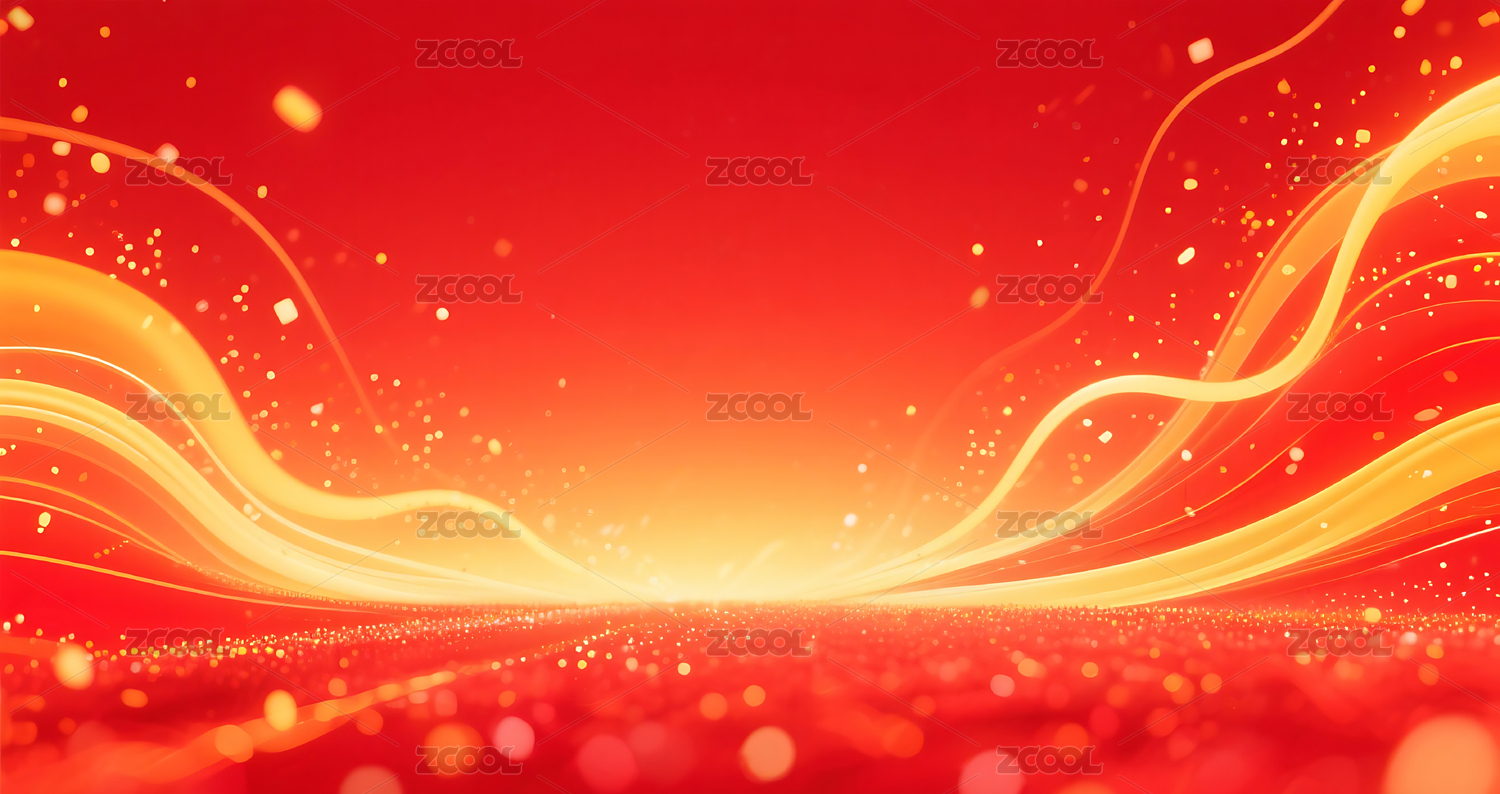 金色波浪线条红色光点背景