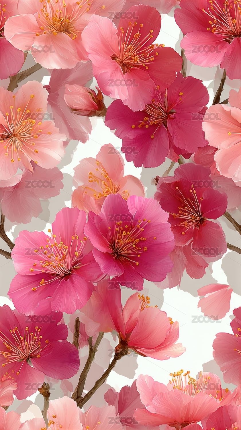 背景,3D,花,明亮,盛开,樱花,鲜艳,蓝色,紫色,粉色