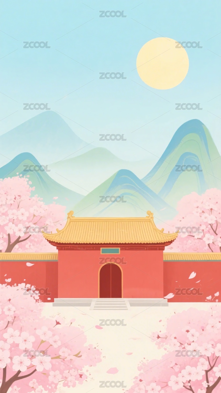 古风山水与建筑樱花图景