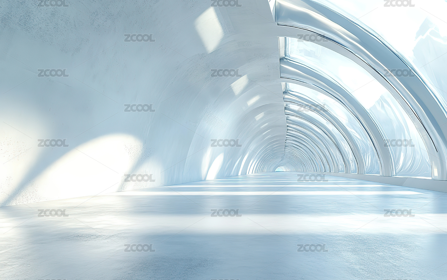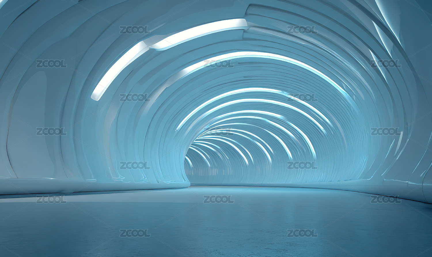 蓝色弧形隧道内部景象