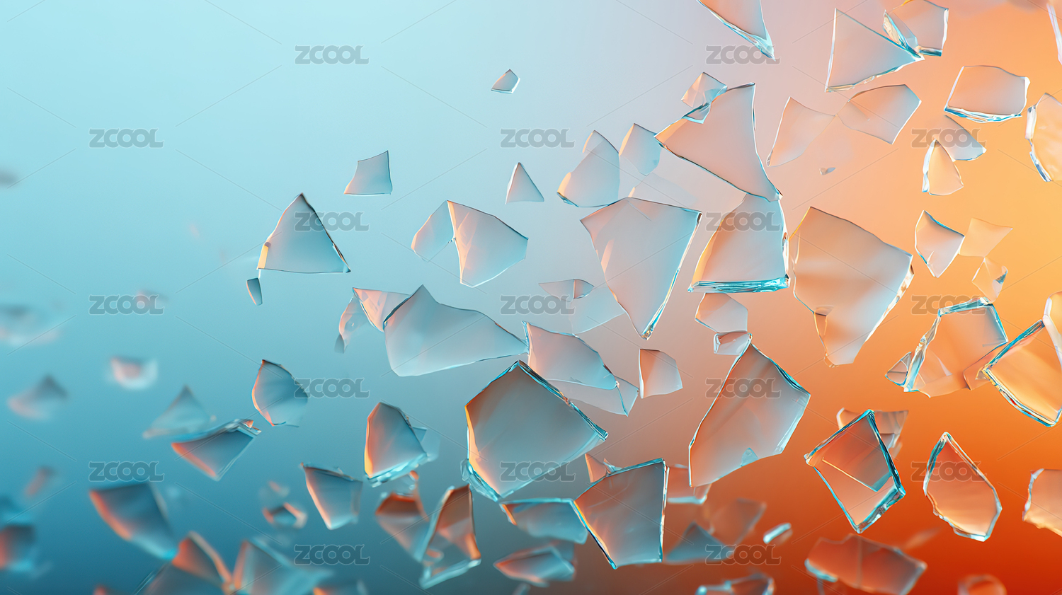 破碎的玻璃碎片四散飞扬