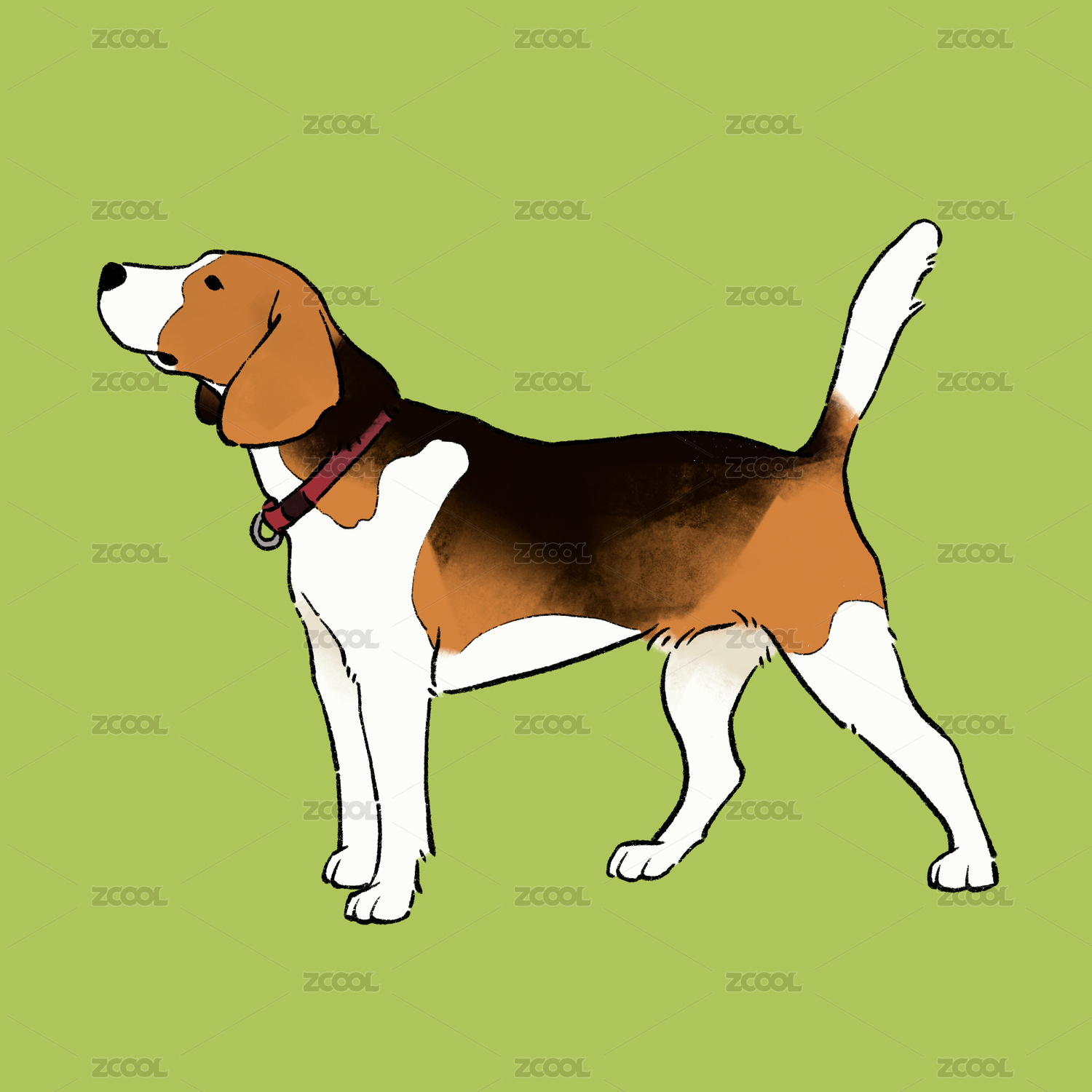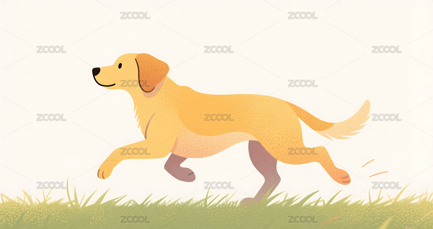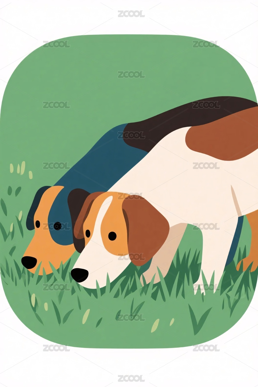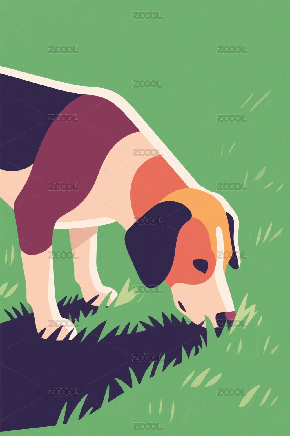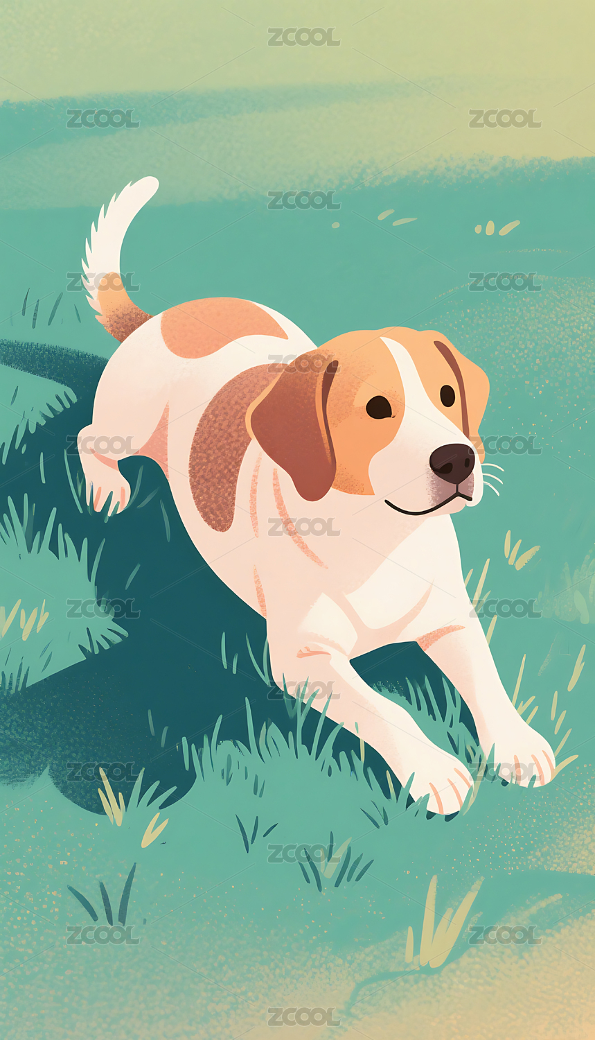 小狗,草地,插画,动物,宠物,卡通,平面,绿色背景,纯色背景,简约