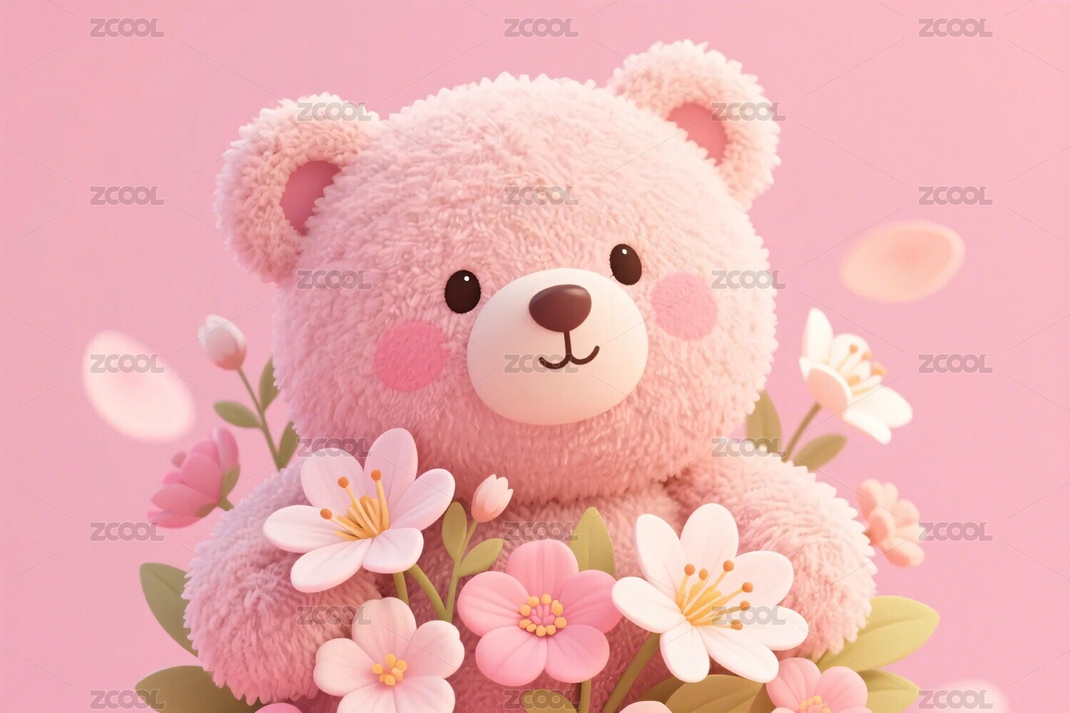 小熊,宝箱,礼物,花朵,梦幻,插画,卡通,童趣,色彩鲜艳,可爱
