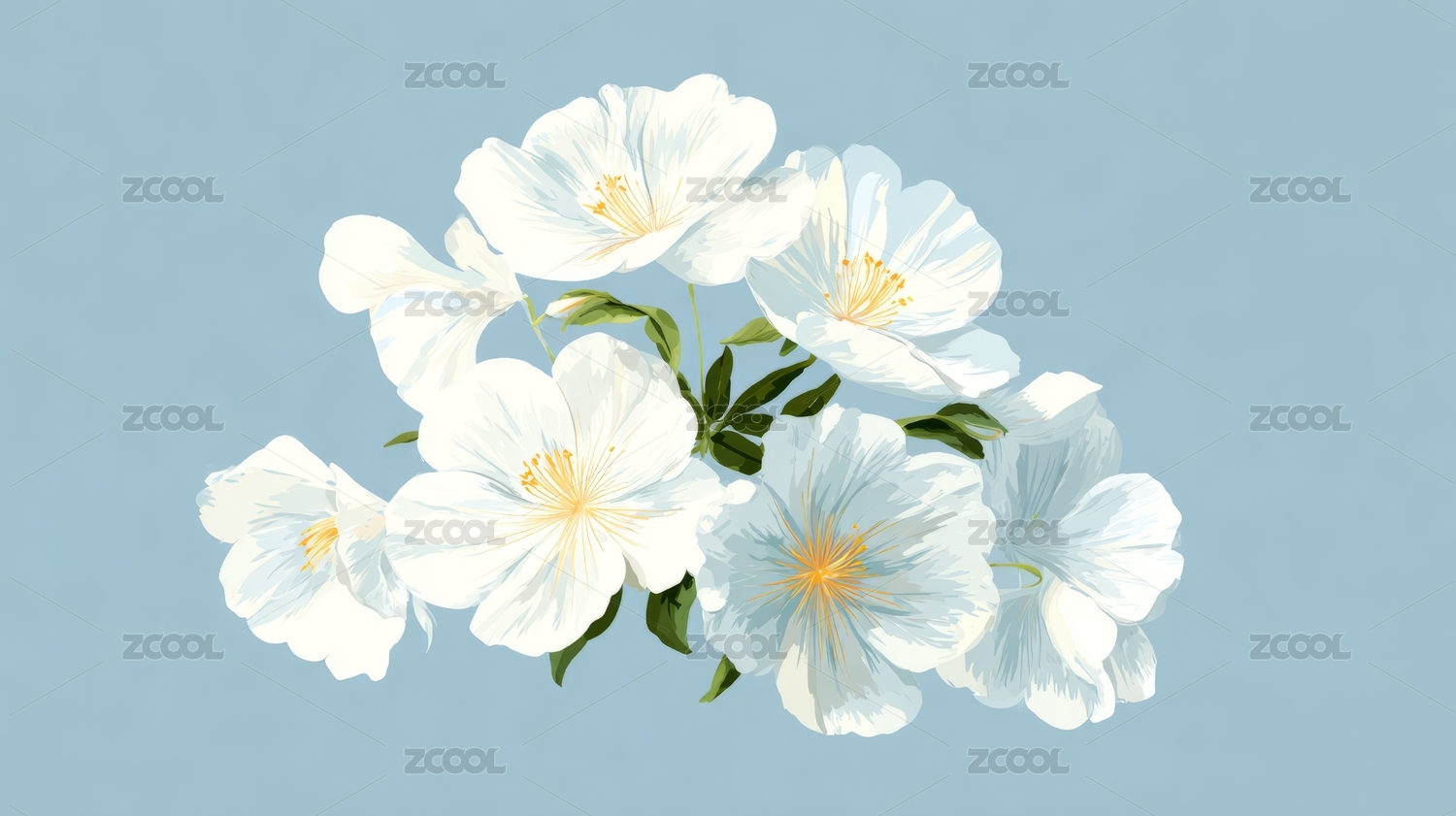 白花,绿叶,花卉,插画,艺术,设计,清新,自然,优雅,柔美