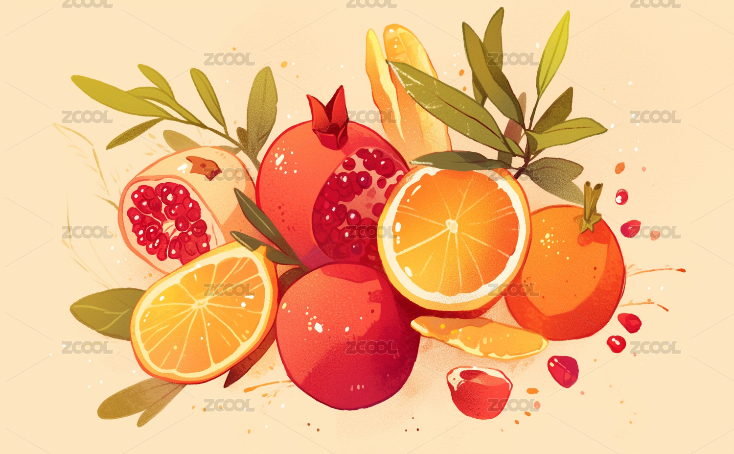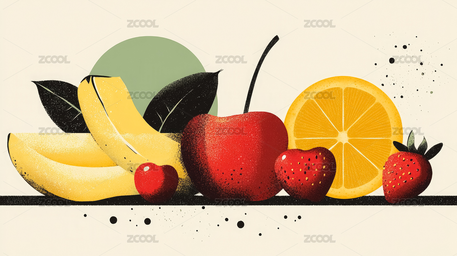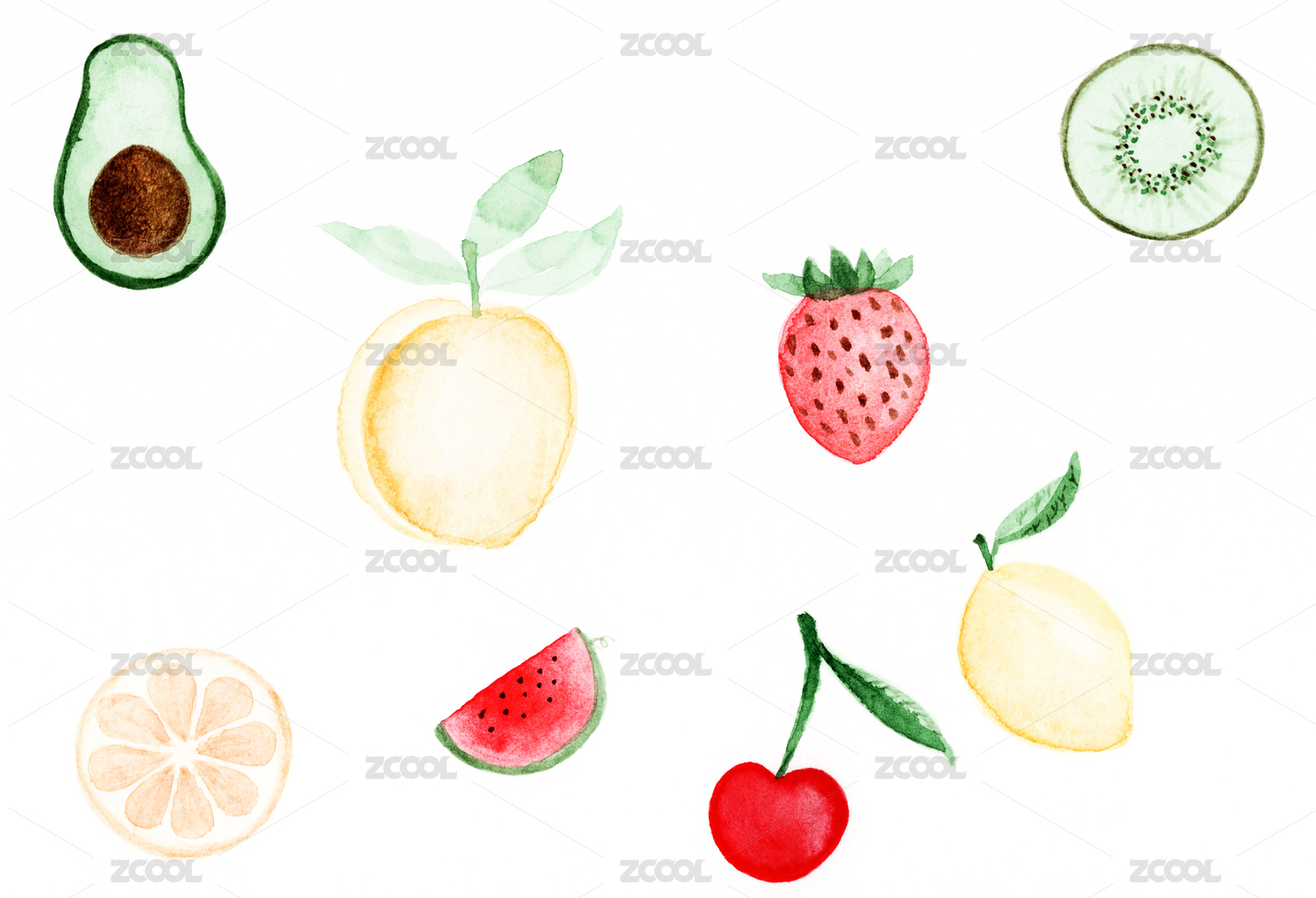 草莓,菠萝,柠檬,西瓜,苹果,橙子,插画,手绘,可爱,多样