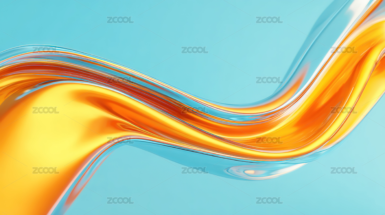 蓝橙色流动线条透明玻璃背景