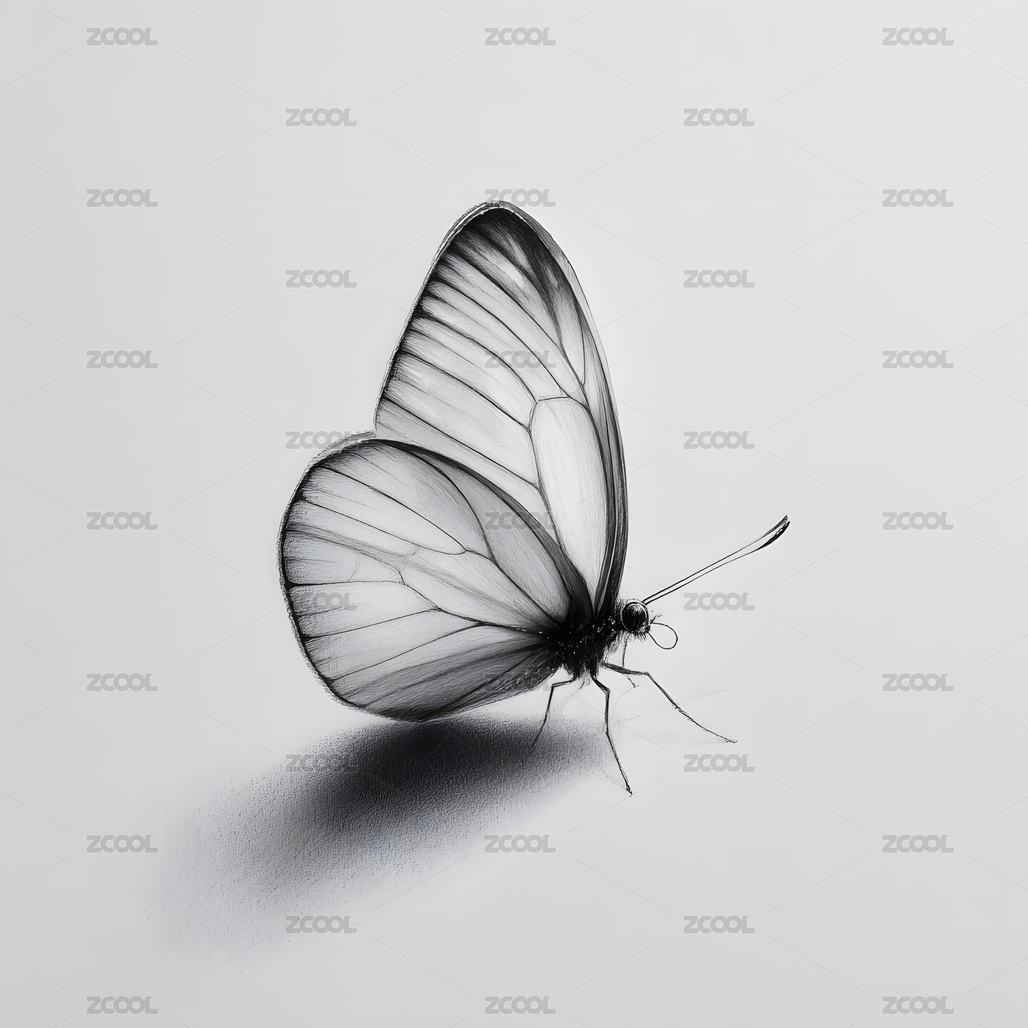 黑白蝴蝶单翅静立
