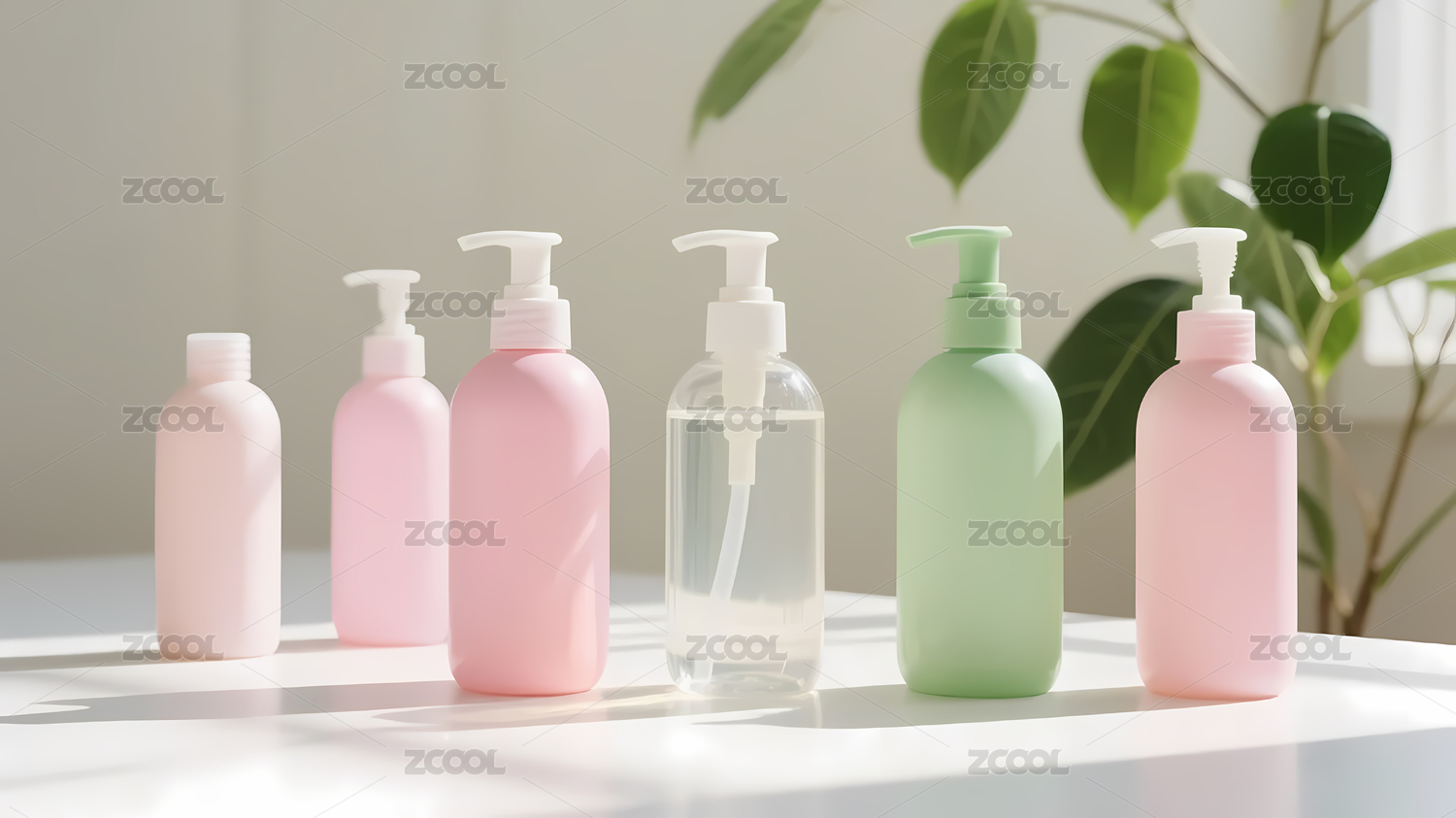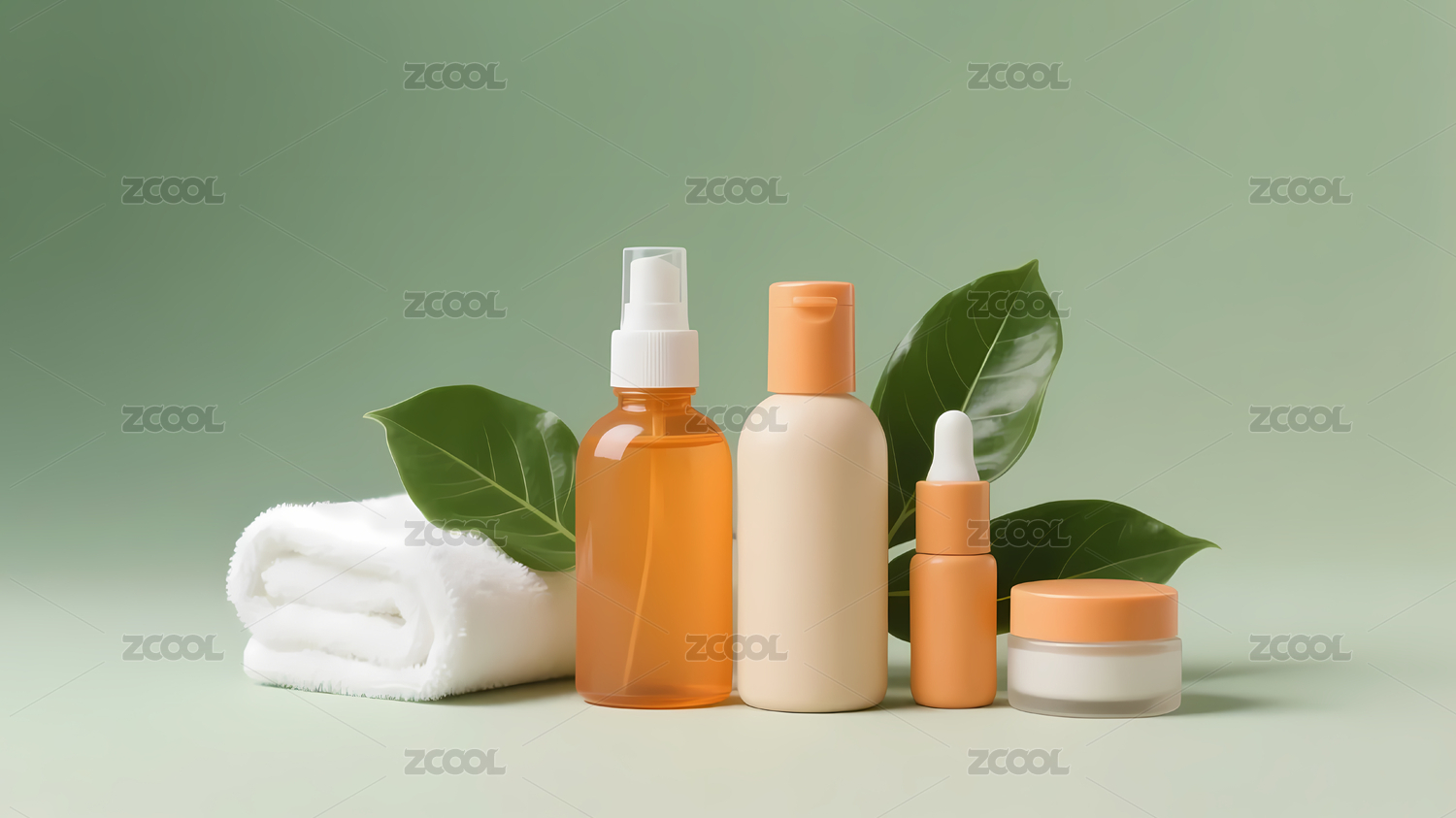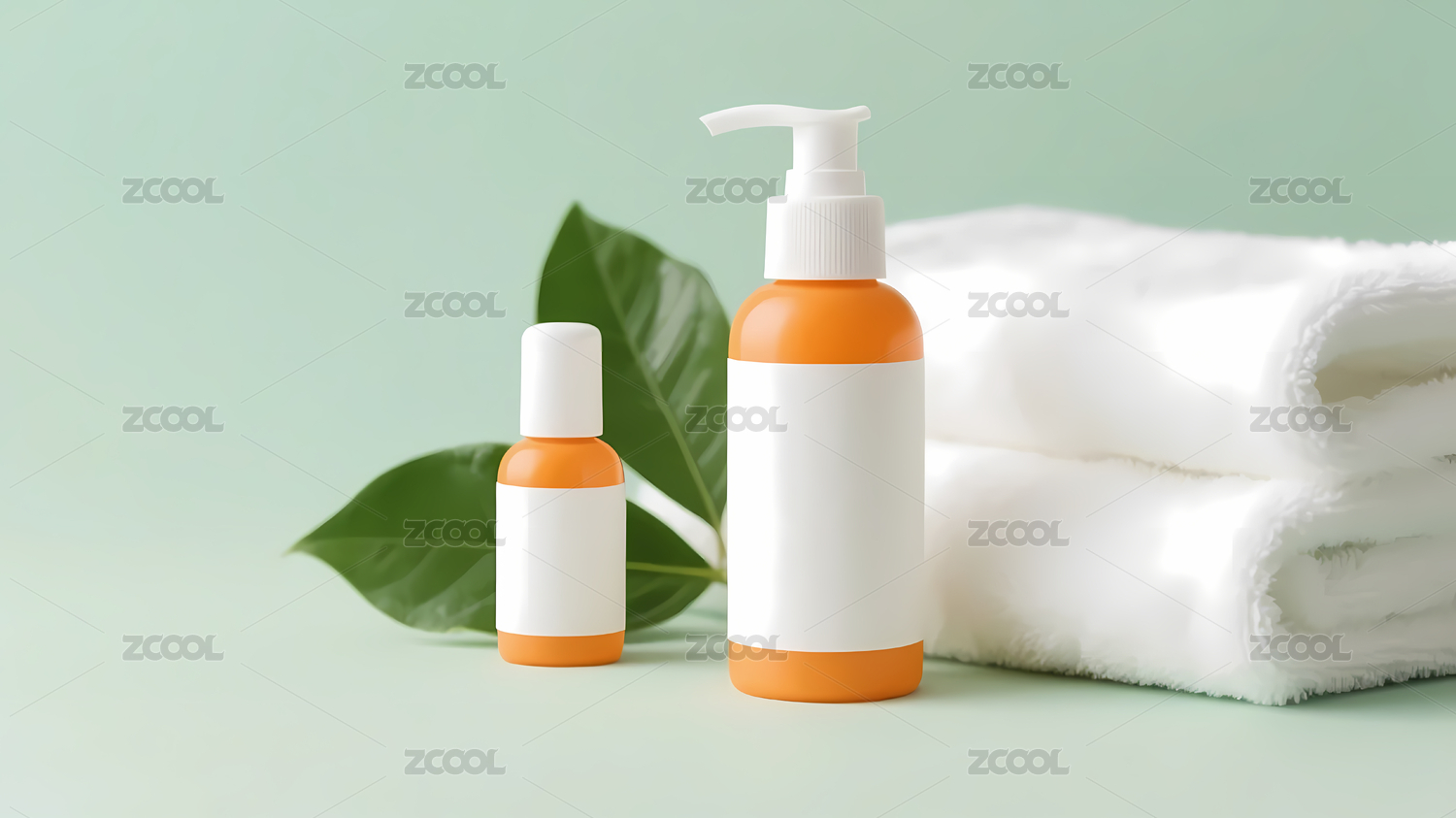 白色,背景,蓝色,叶子,粉色,护肤品,瓶子,浅绿,喷嘴,毛巾