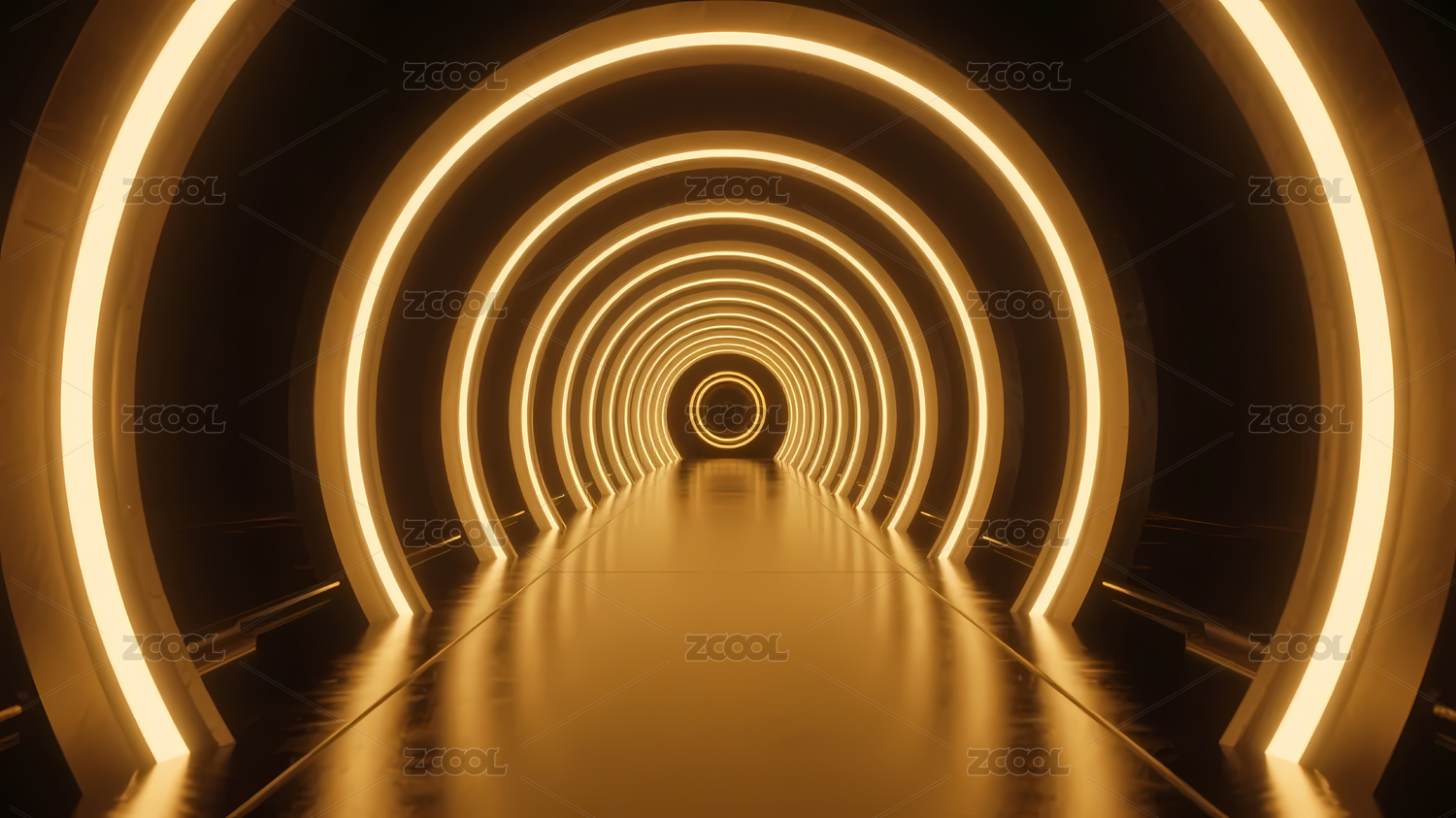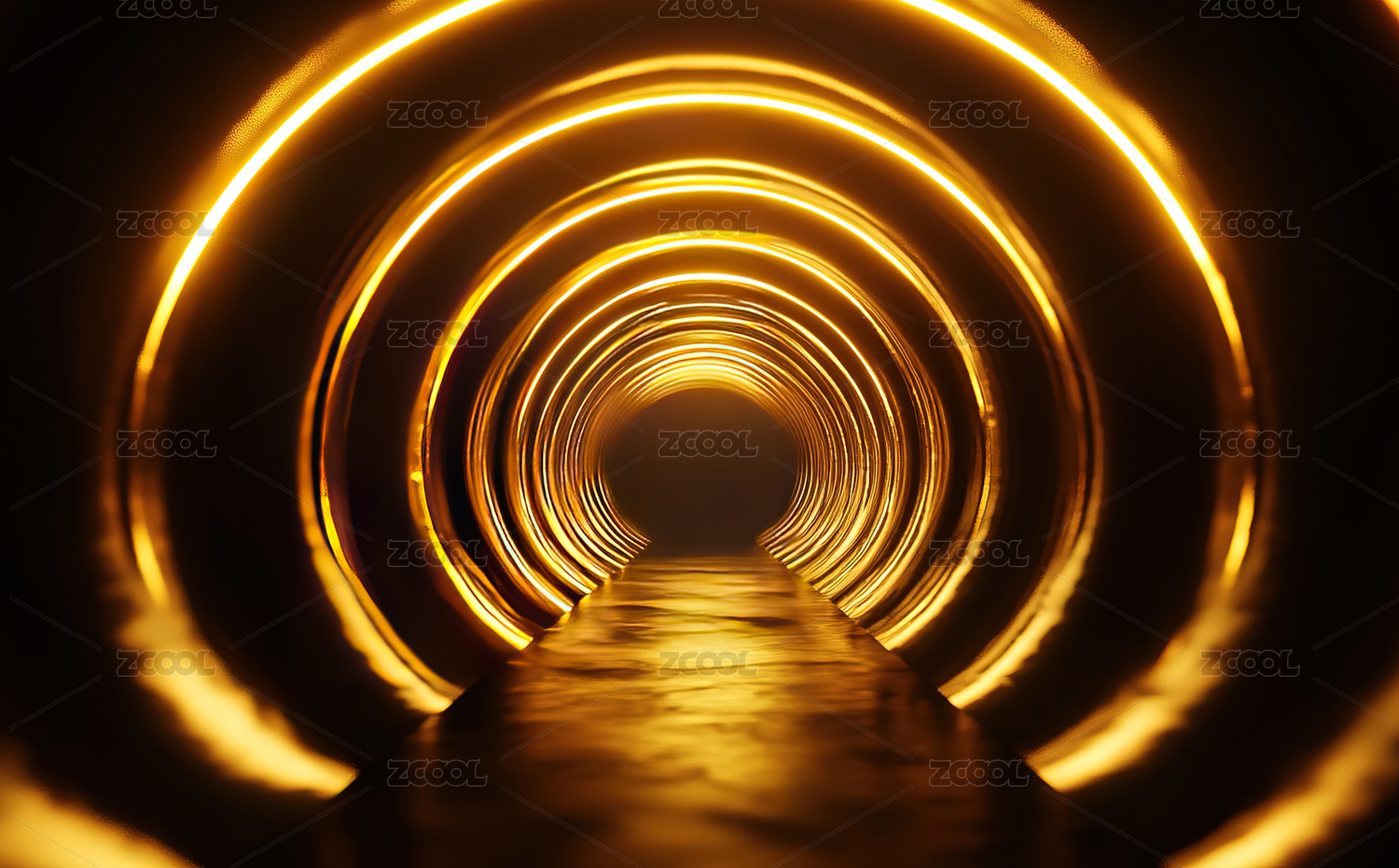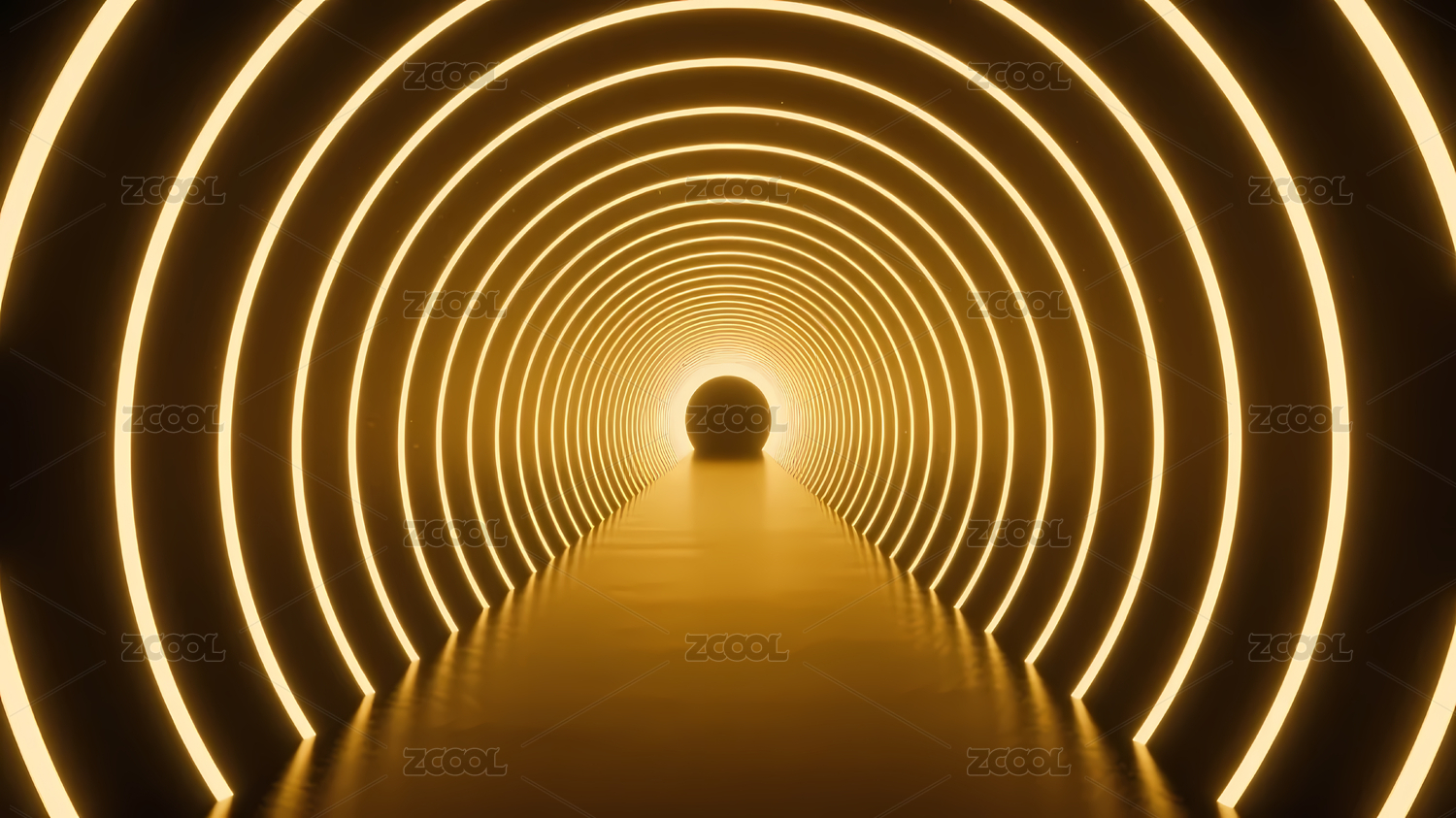 背景,深色,黄色,霓虹,灯,圆形,隧道,圆环,延伸,未来