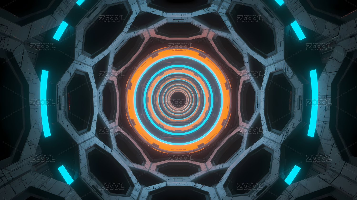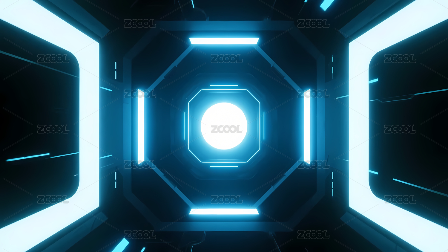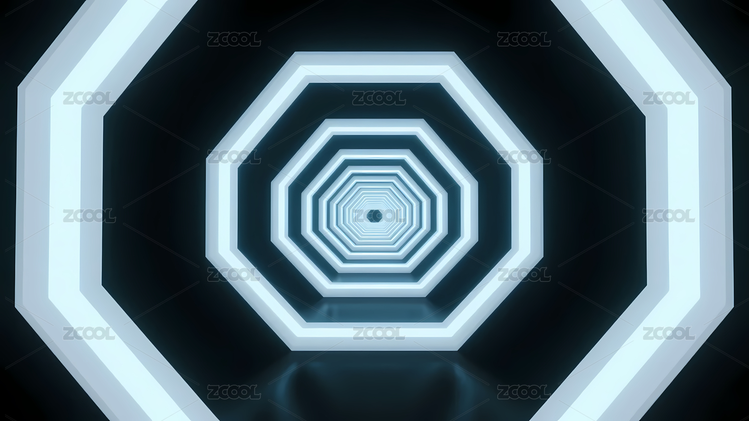 蓝黑八边形科幻隧道