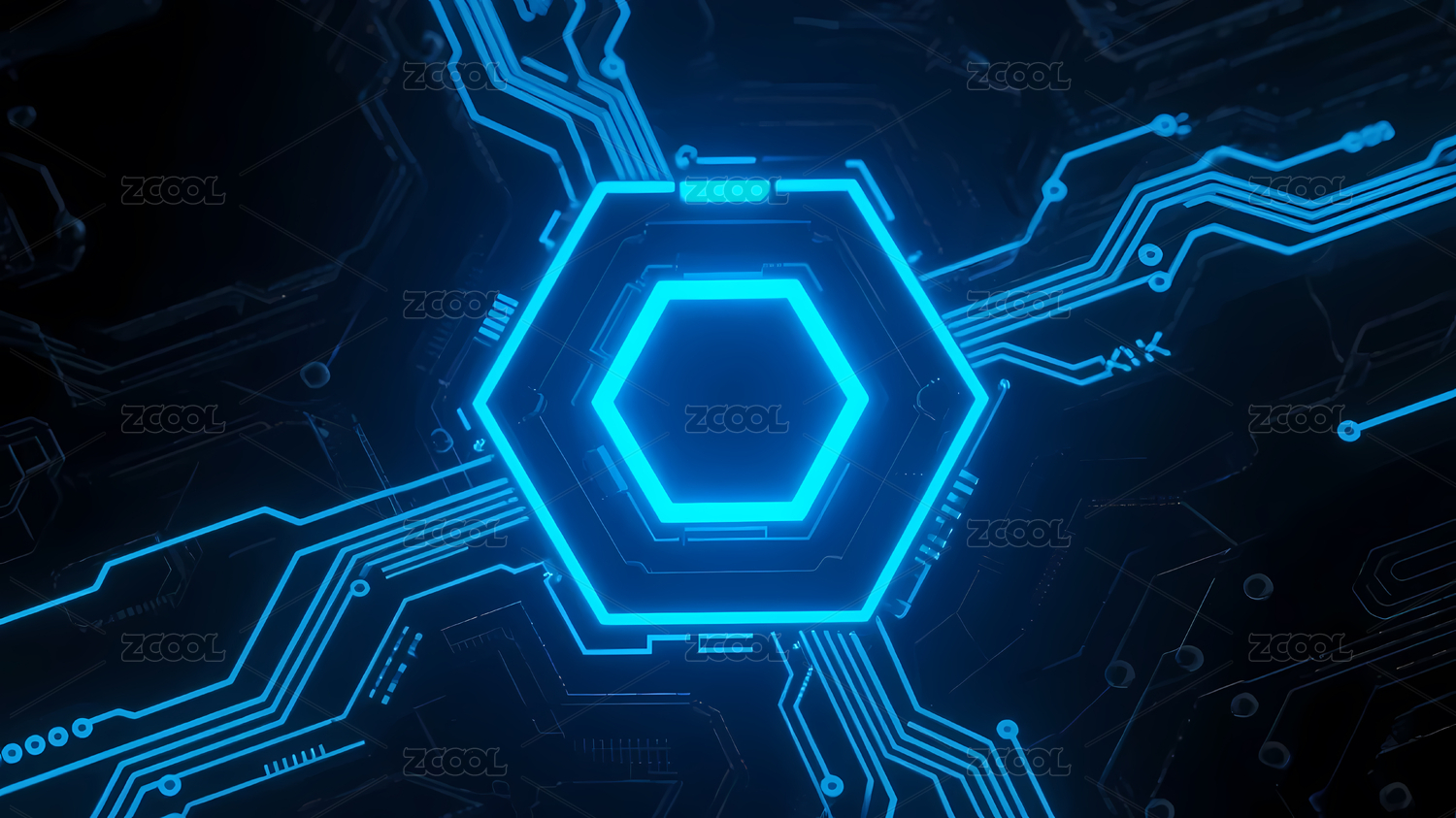 背景,蓝色,深色,视觉,发光,科技,六边形,电路,图案,复杂