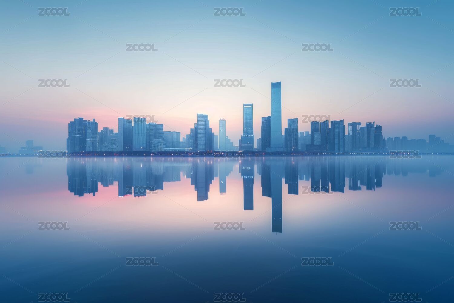 现代摩天大楼与宁静水面
