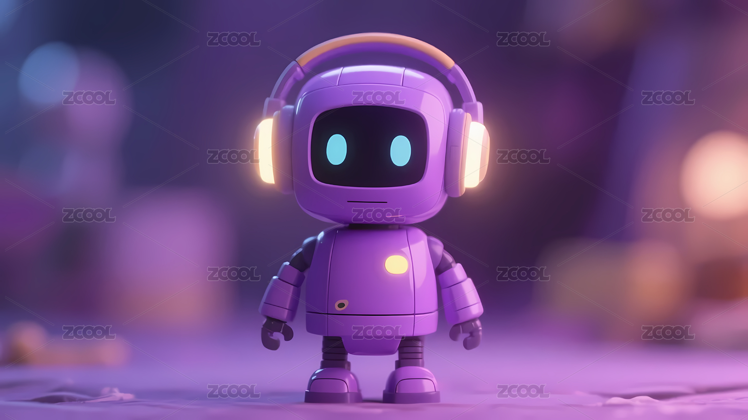 背景,发光,蓝色,光斑,氛围,紫色,模糊,耳机,机器人,眼睛