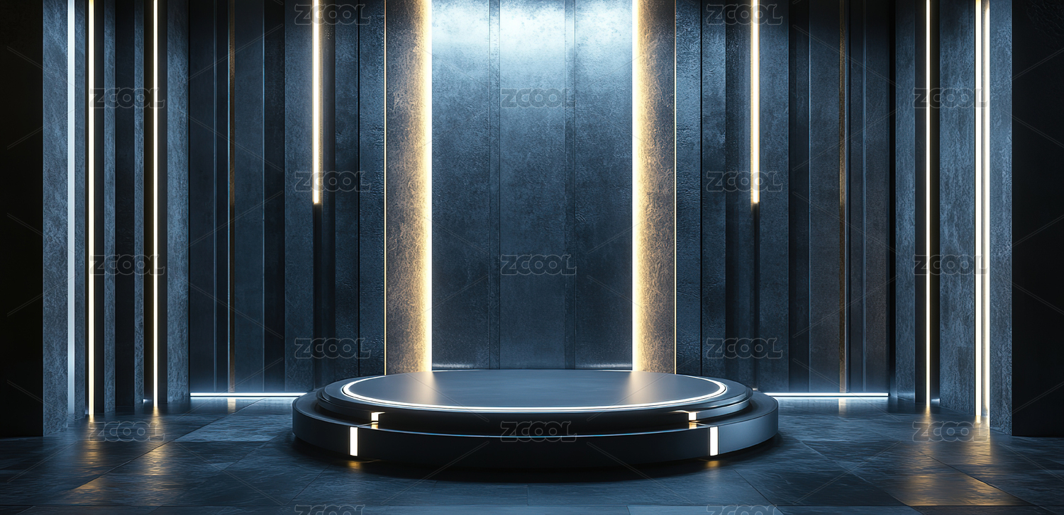 蓝光圆形平台灰金背景