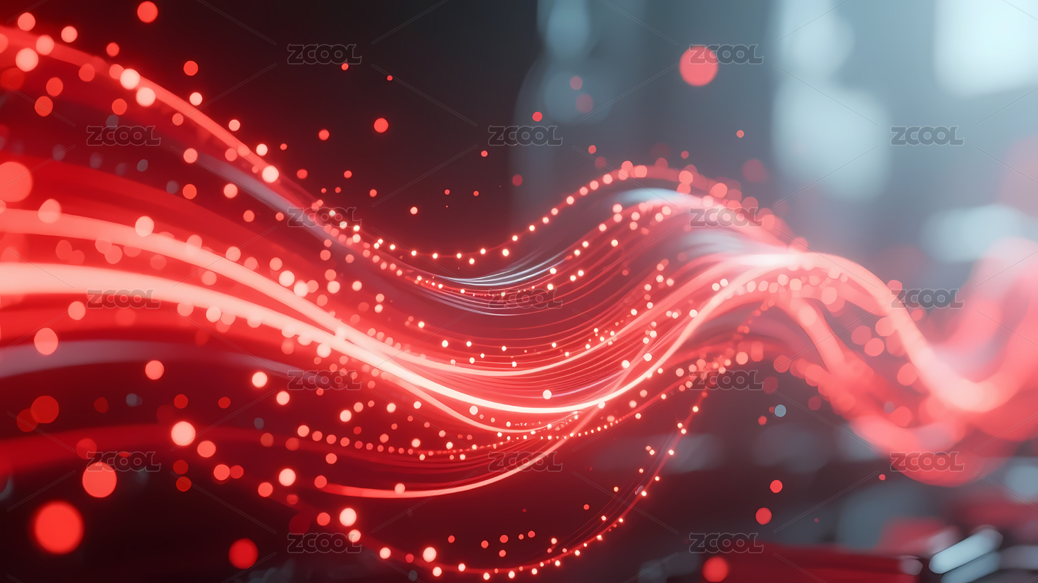 红色光点流动波浪抽象背景