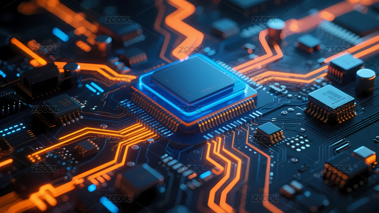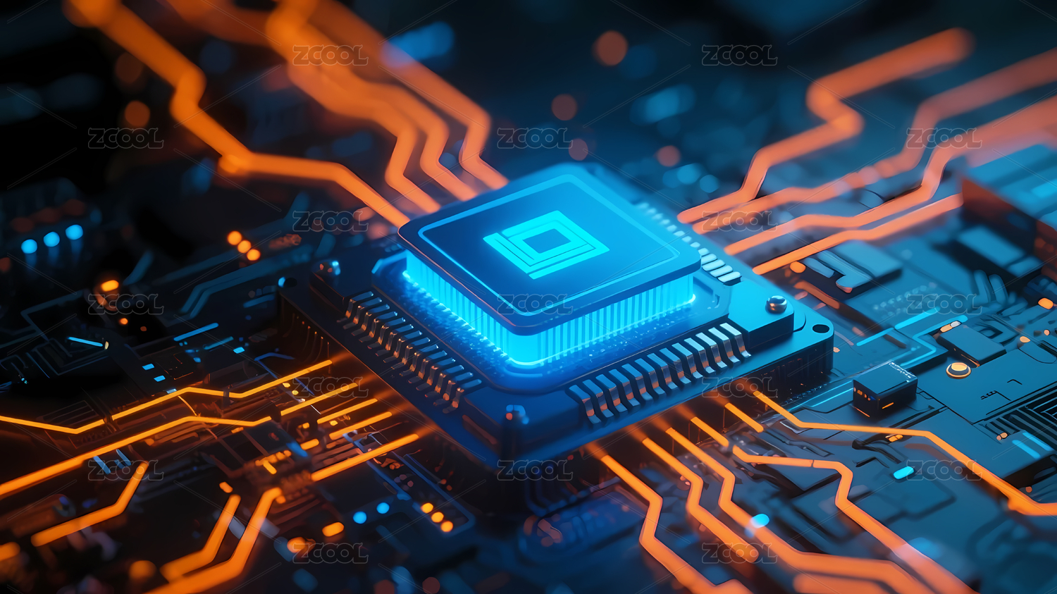 背景,蓝色,橙色,线条,深色,电路板,电子,处理器,芯片,高科技