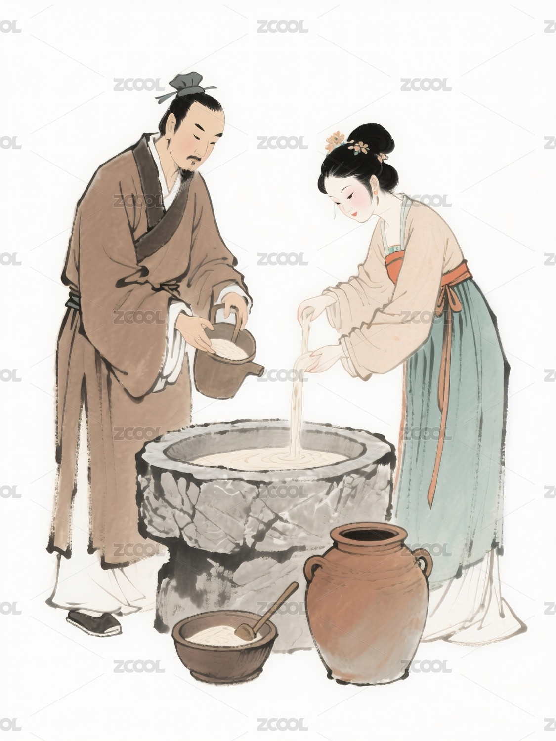 人物,生活,传统,食物,文化,古代,劳动,粮食,器具,石磨