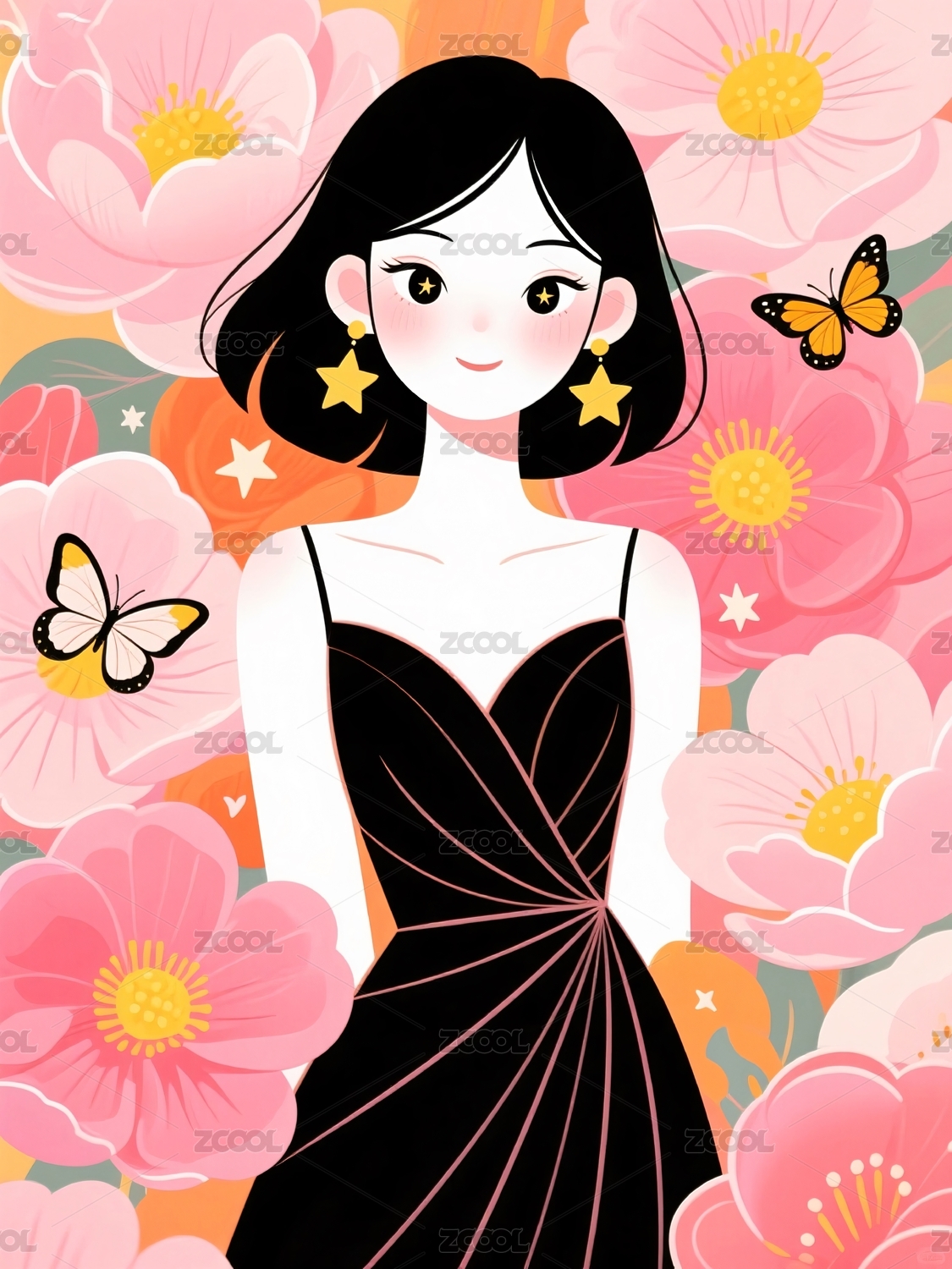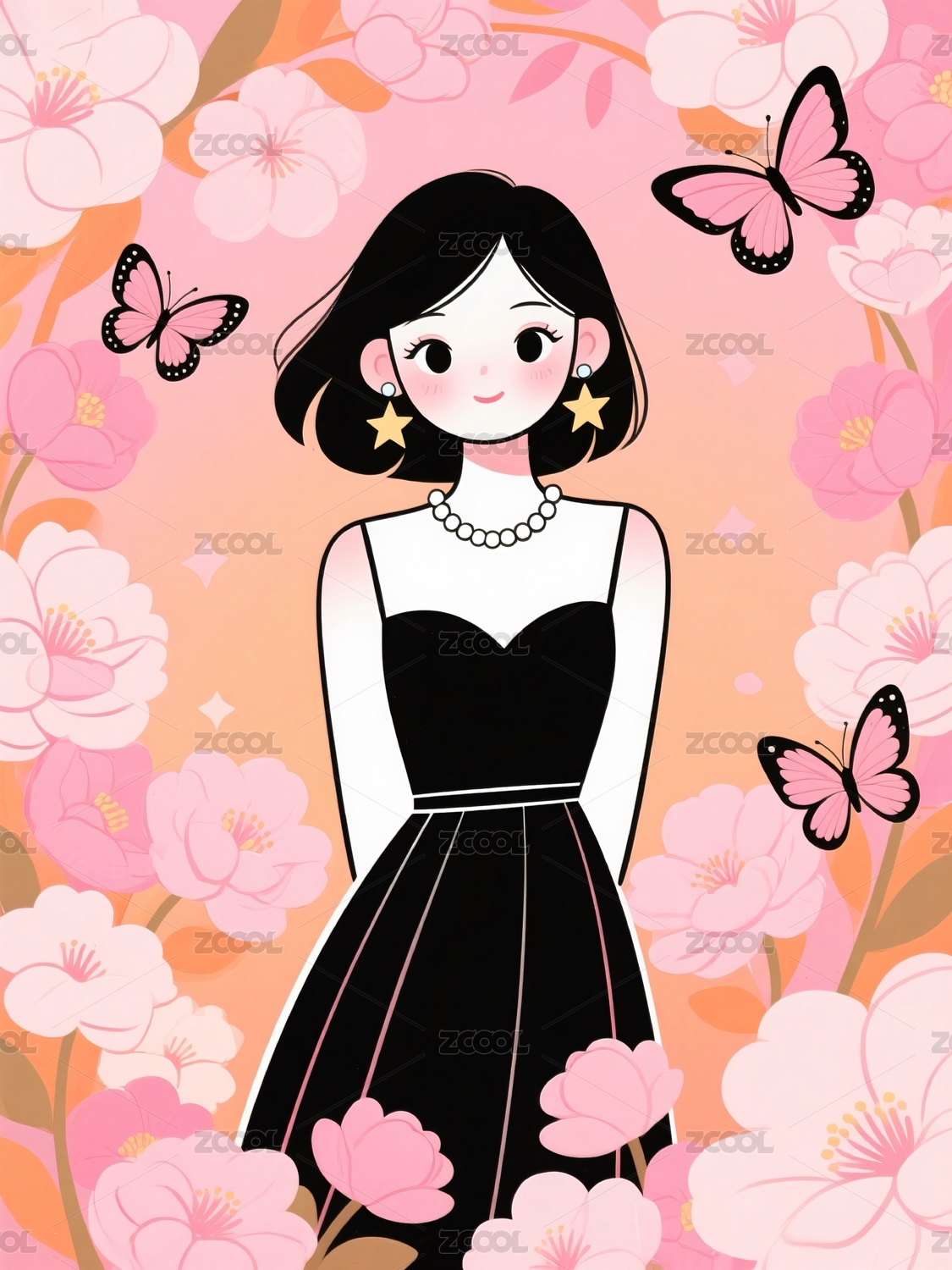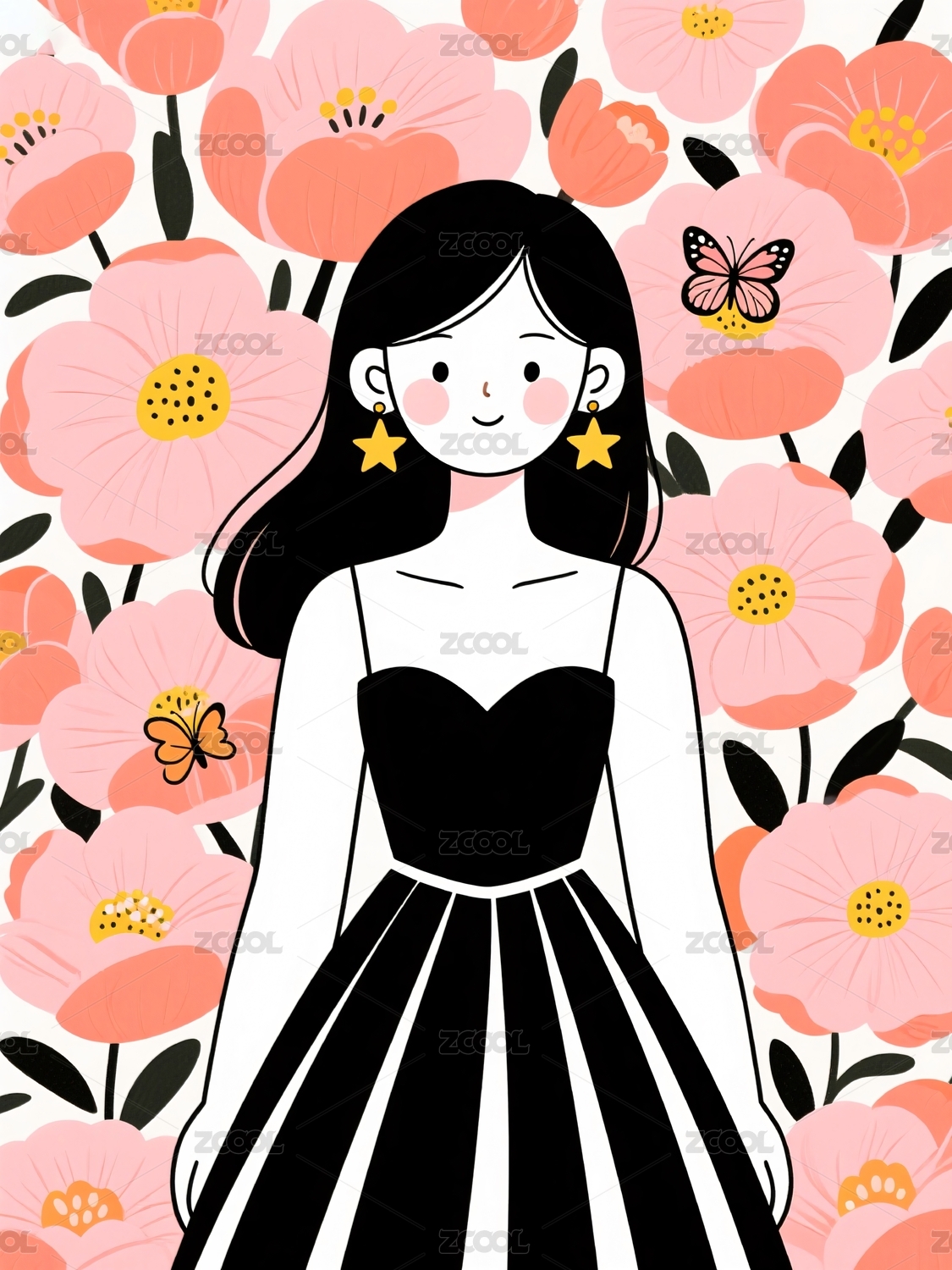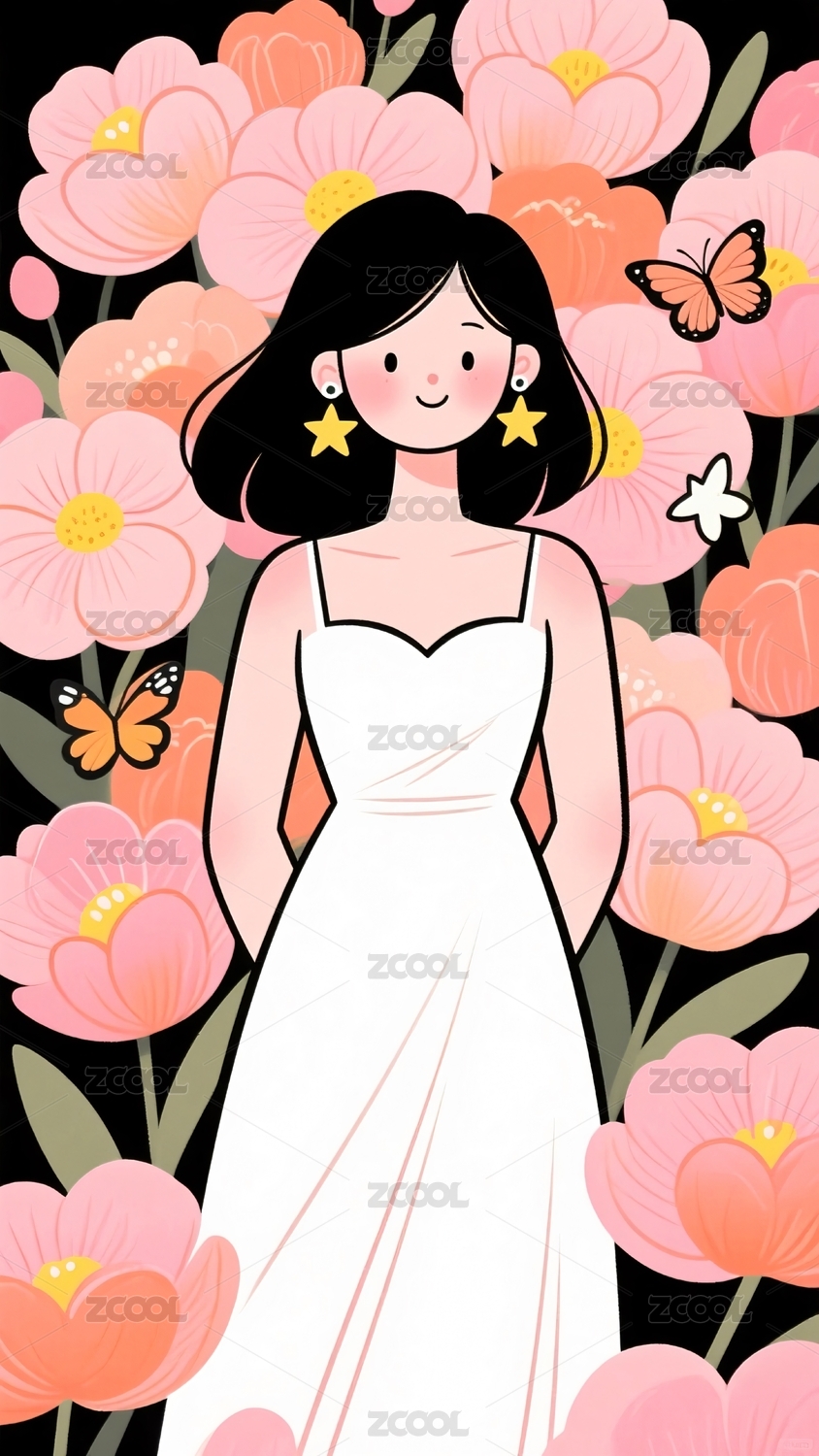 花朵,唯美,人物,背景,装饰,艺术,插画,优雅,可爱,少女