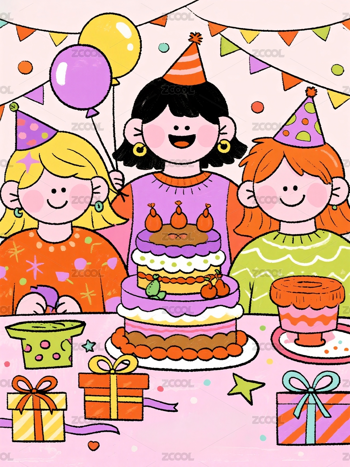 小朋友过生日儿童插画