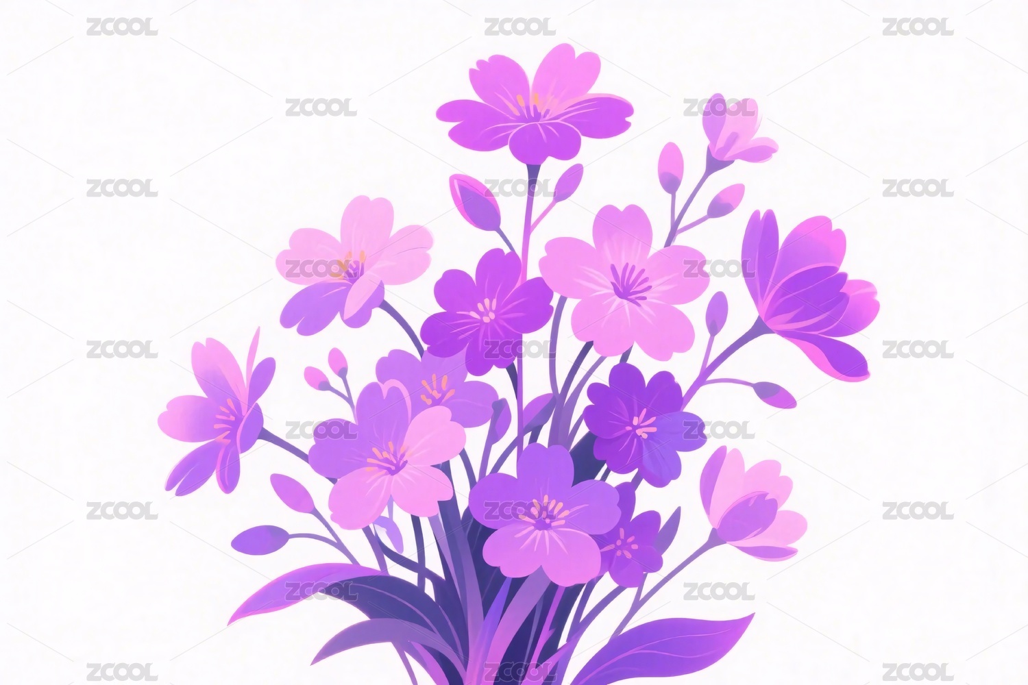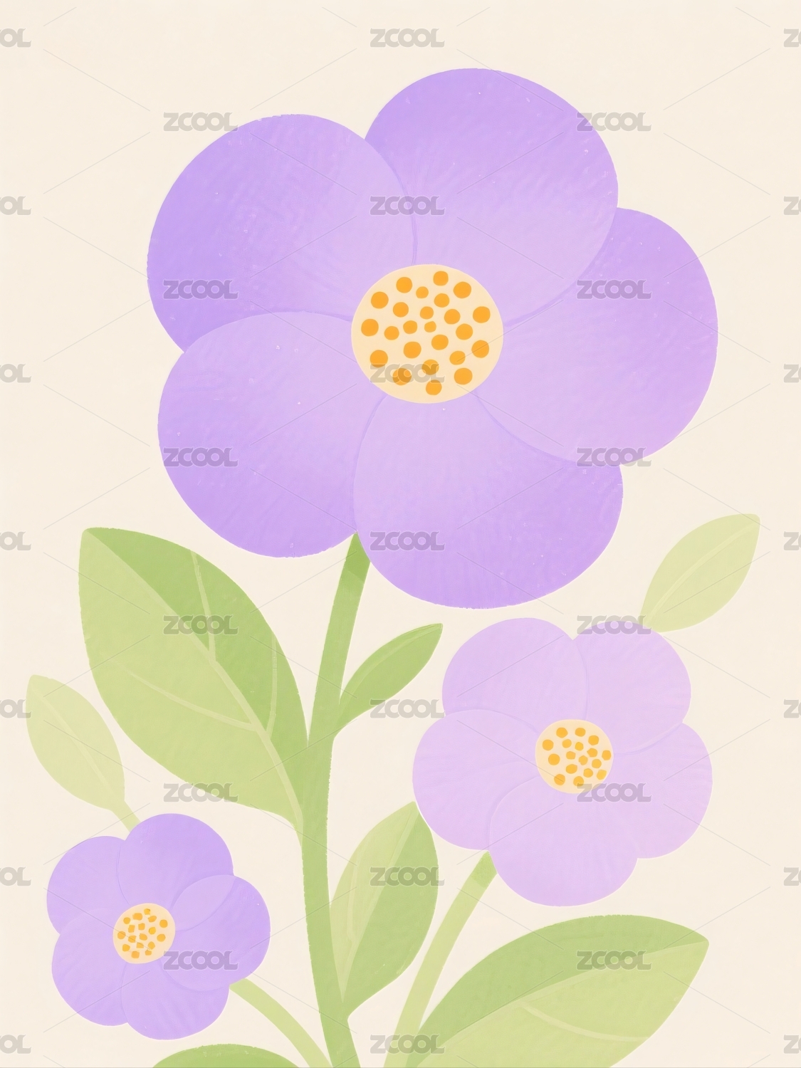 紫色花朵与叶子组成的卡通插画